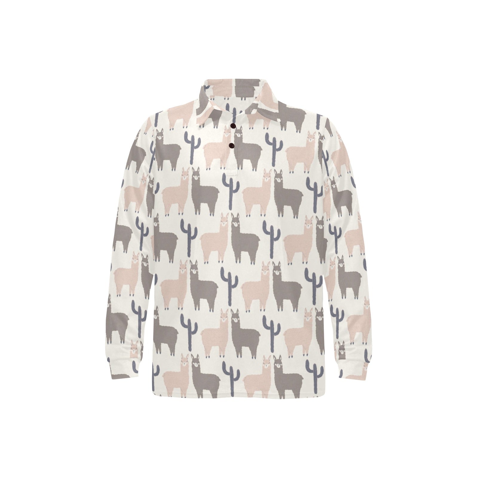 Llama Alpaca pattern Men's Long Sleeve Polo Shirt