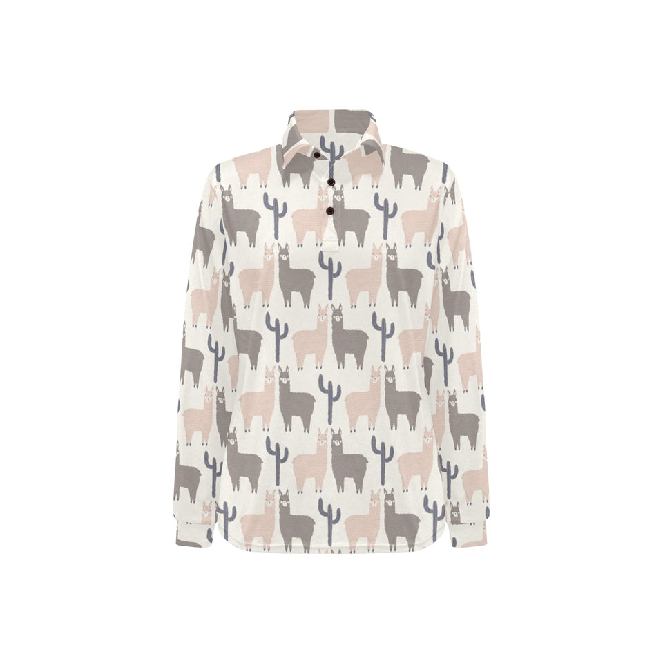 Llama Alpaca pattern Women's Long Sleeve Polo Shirt