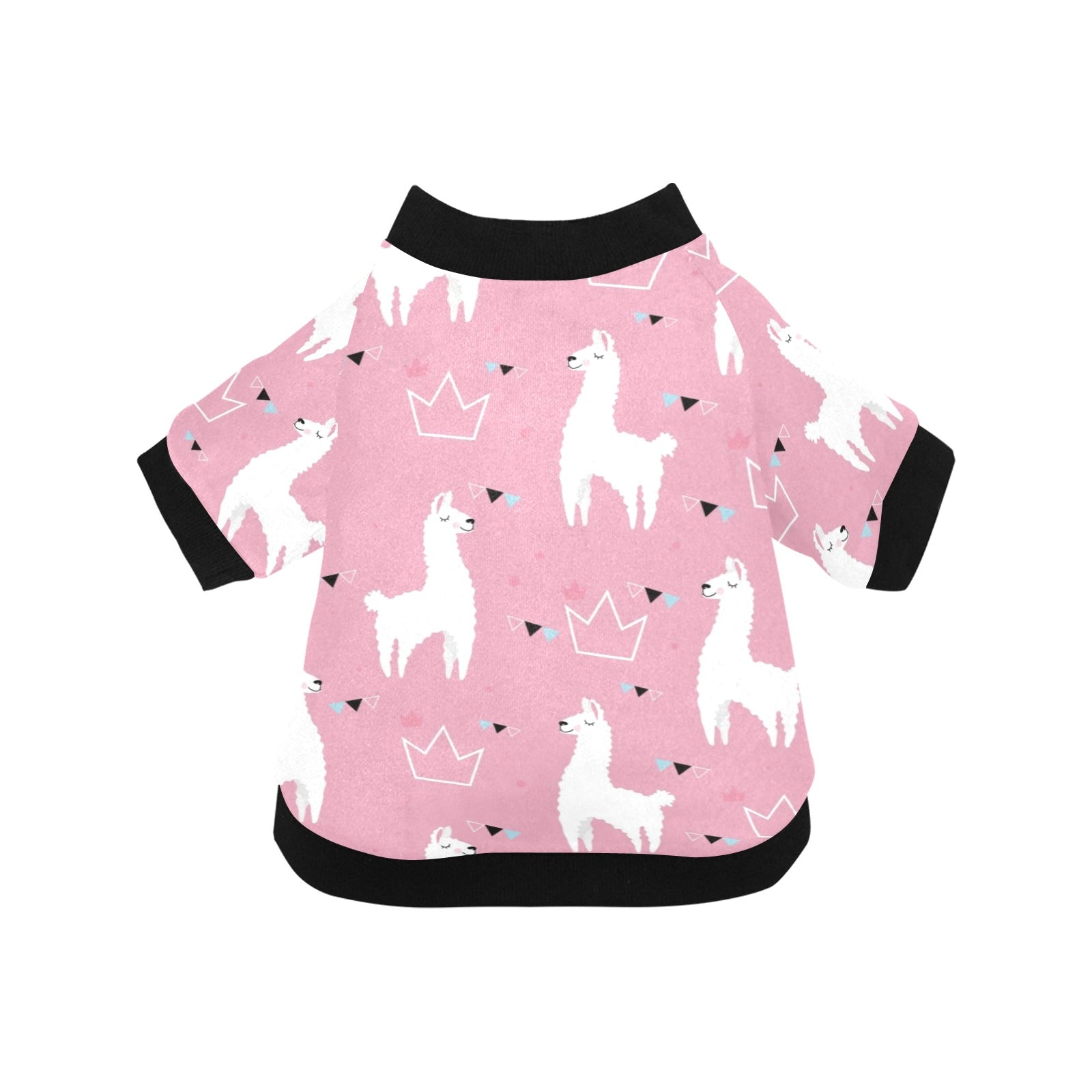 Llama Alpaca pink background All Over Print Pet Dog Round Neck Fuzzy Shirt