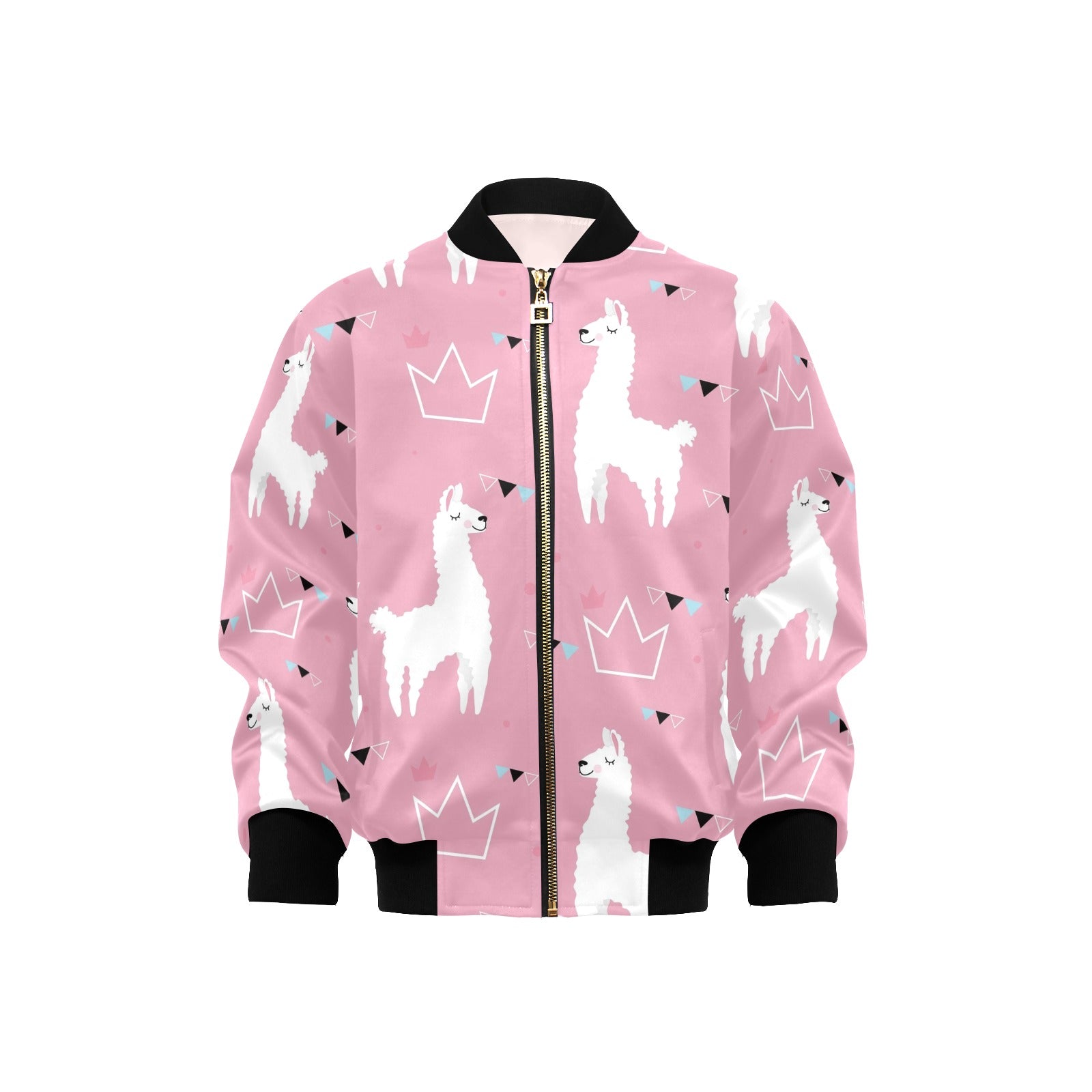 Llama Alpaca pink background Kids' Boys' Girls' Bomber Jacket