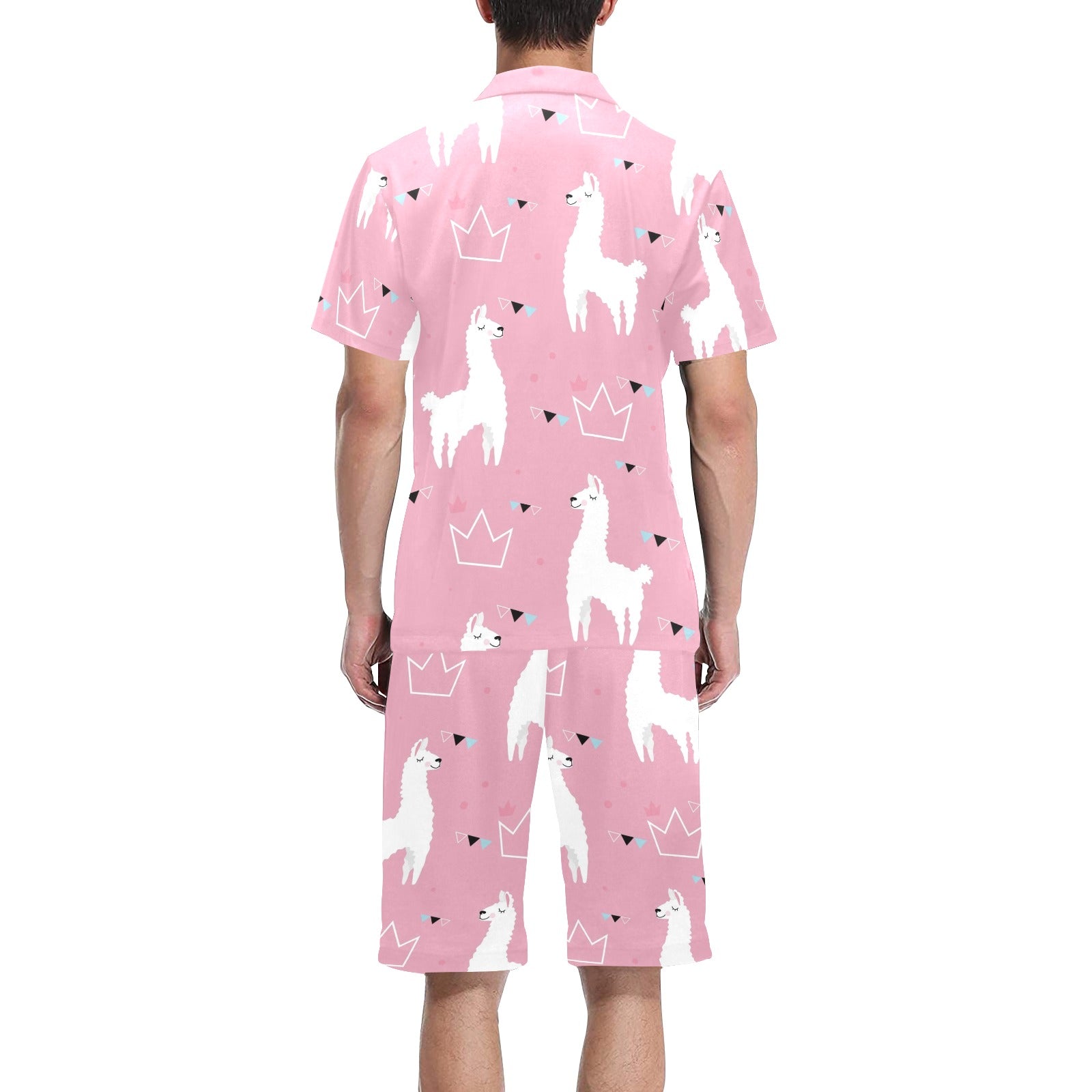 Llama Alpaca pink background Men's V-Neck Short Pajama Set