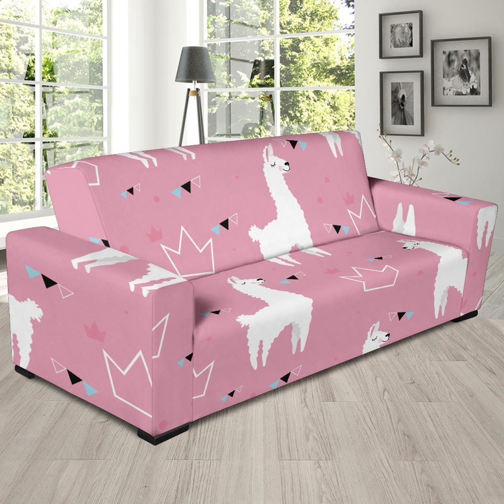 Llama Alpaca Pink Background Sofa Slipcover