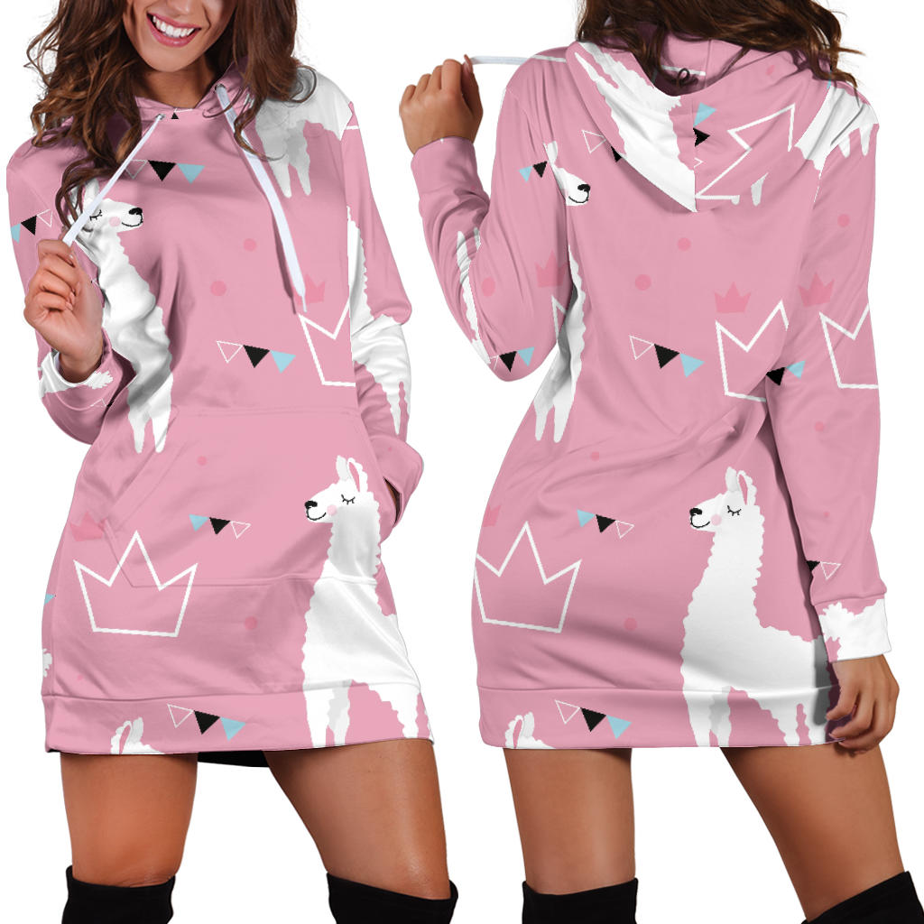 Llama Alpaca Pink Background Women'S Hoodie Dress