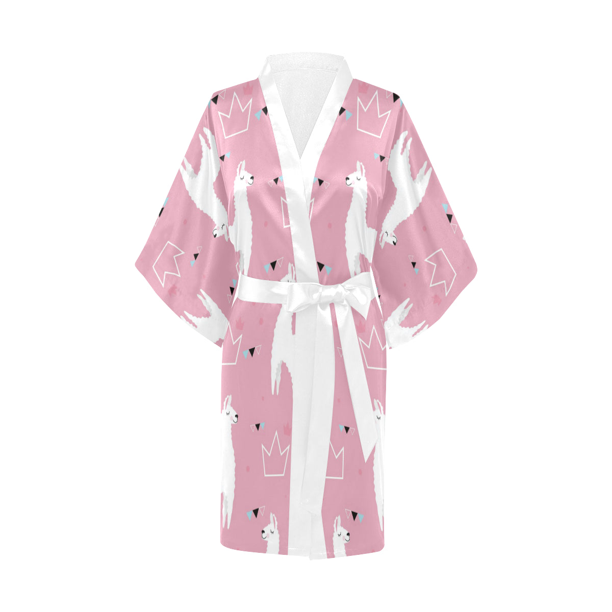 Llama Alpaca pink background Women's Short Kimono Robe is a uniqued design and limited item. It made to order, hand printed, and sewn with love in our factory.