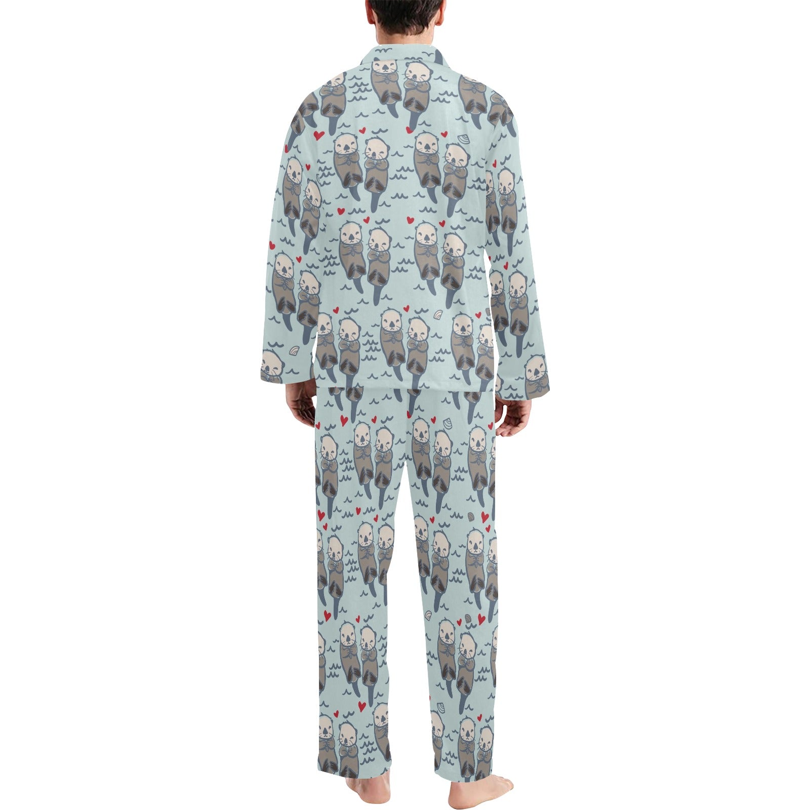Lovely Sea Otter Pattern Men's Long Pajama Set