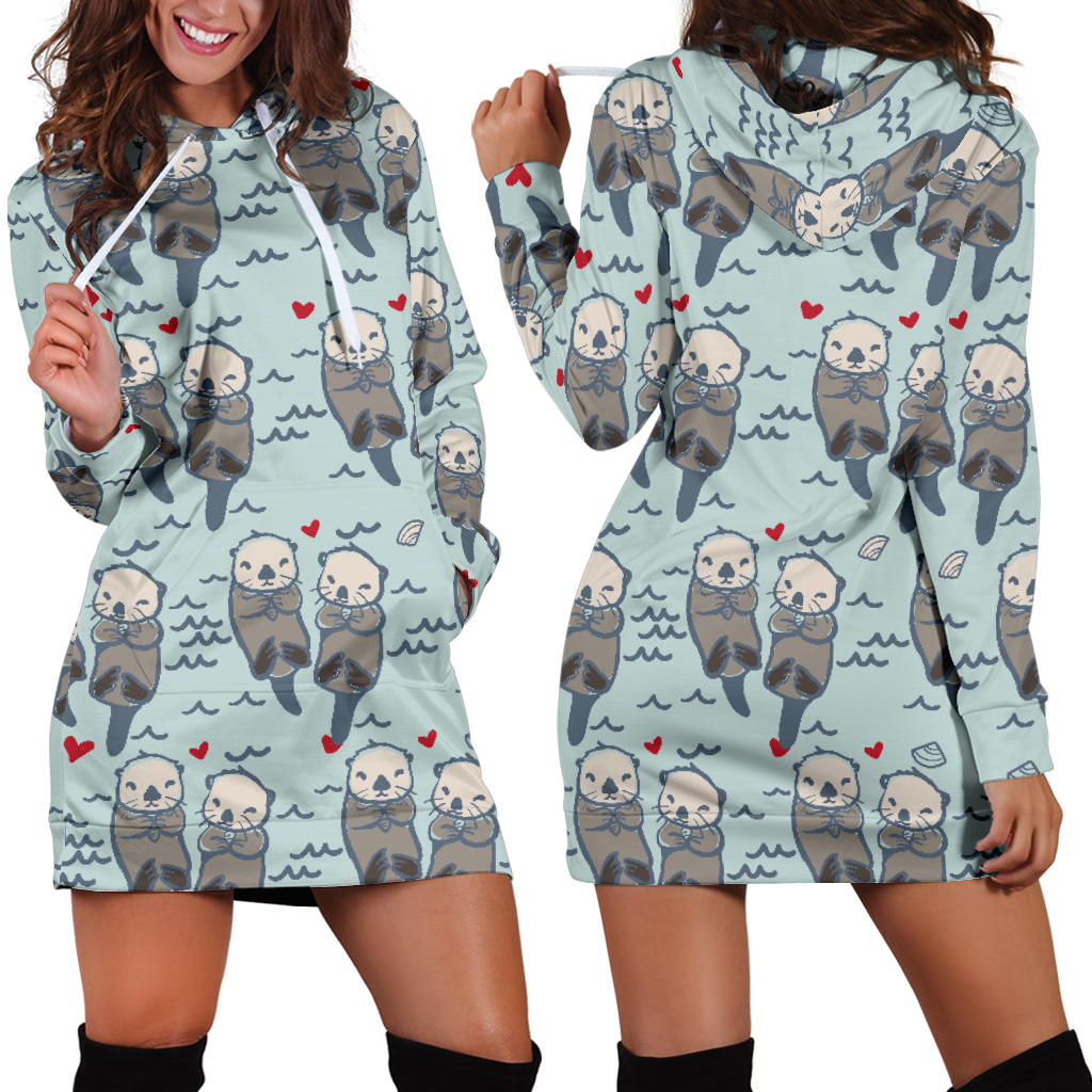 Lovely Sea Otter Pattern Women'S Hoodie Dress