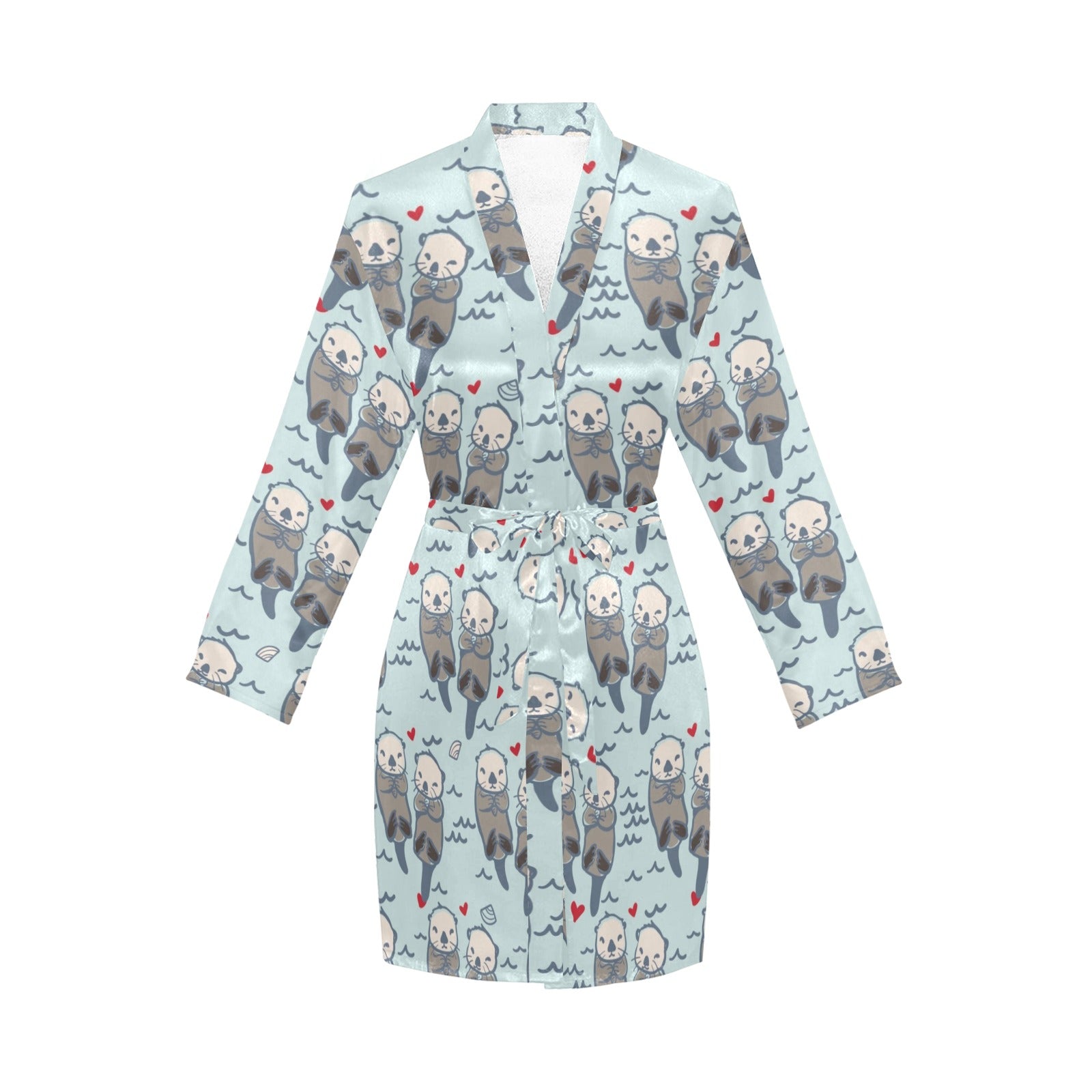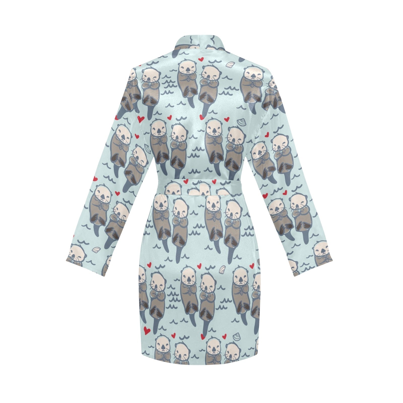 Lovely Sea Otter Pattern Women's Long Sleeve Belted Night Robe