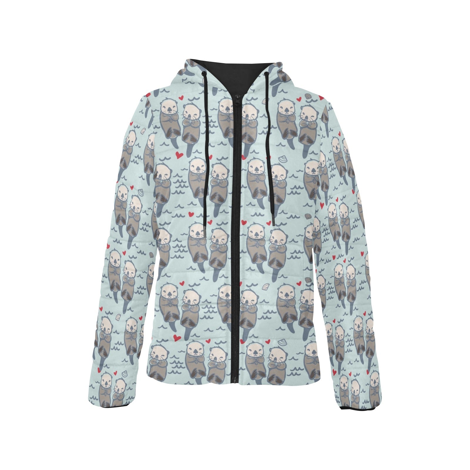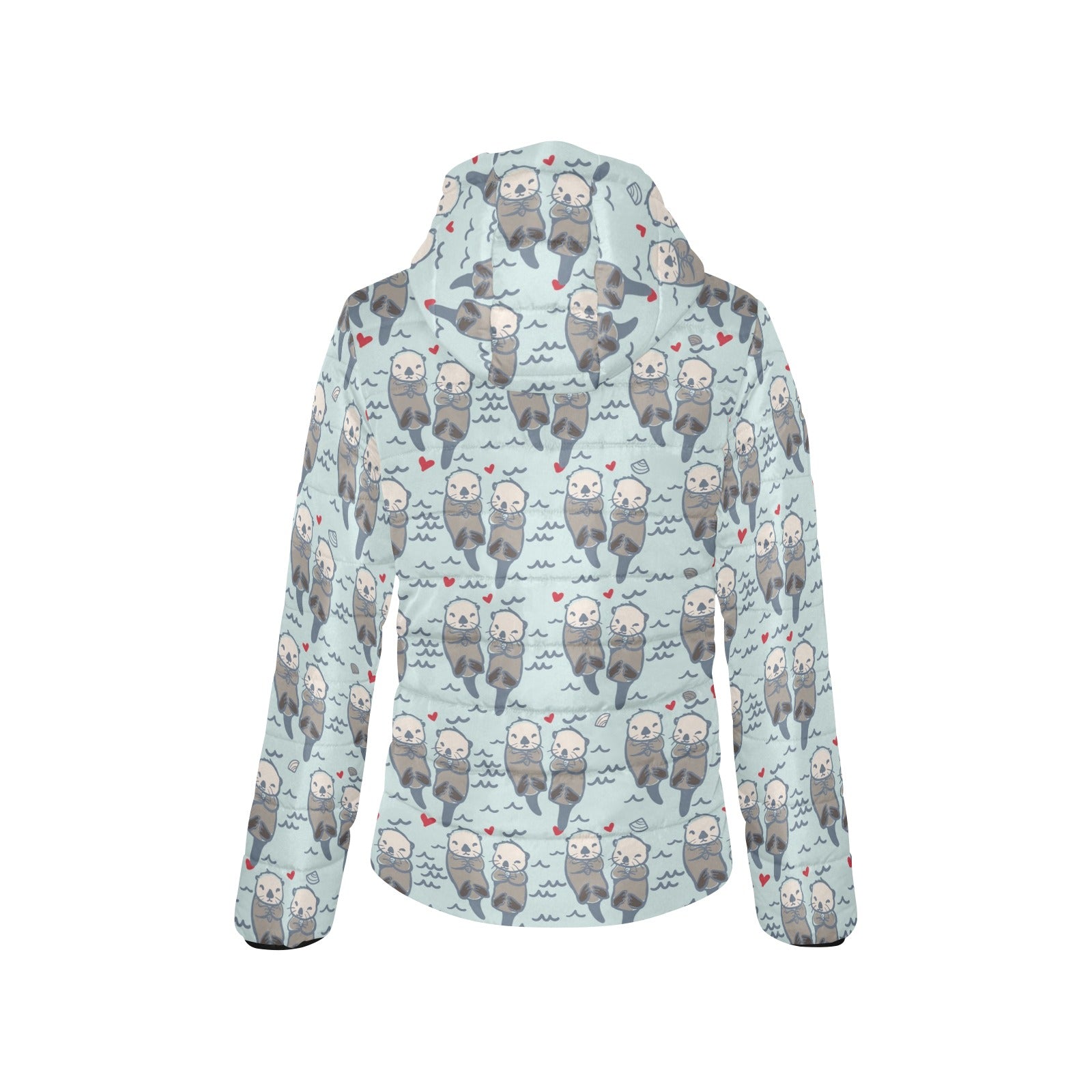 Lovely Sea Otter Pattern Women's Padded Hooded Jacket