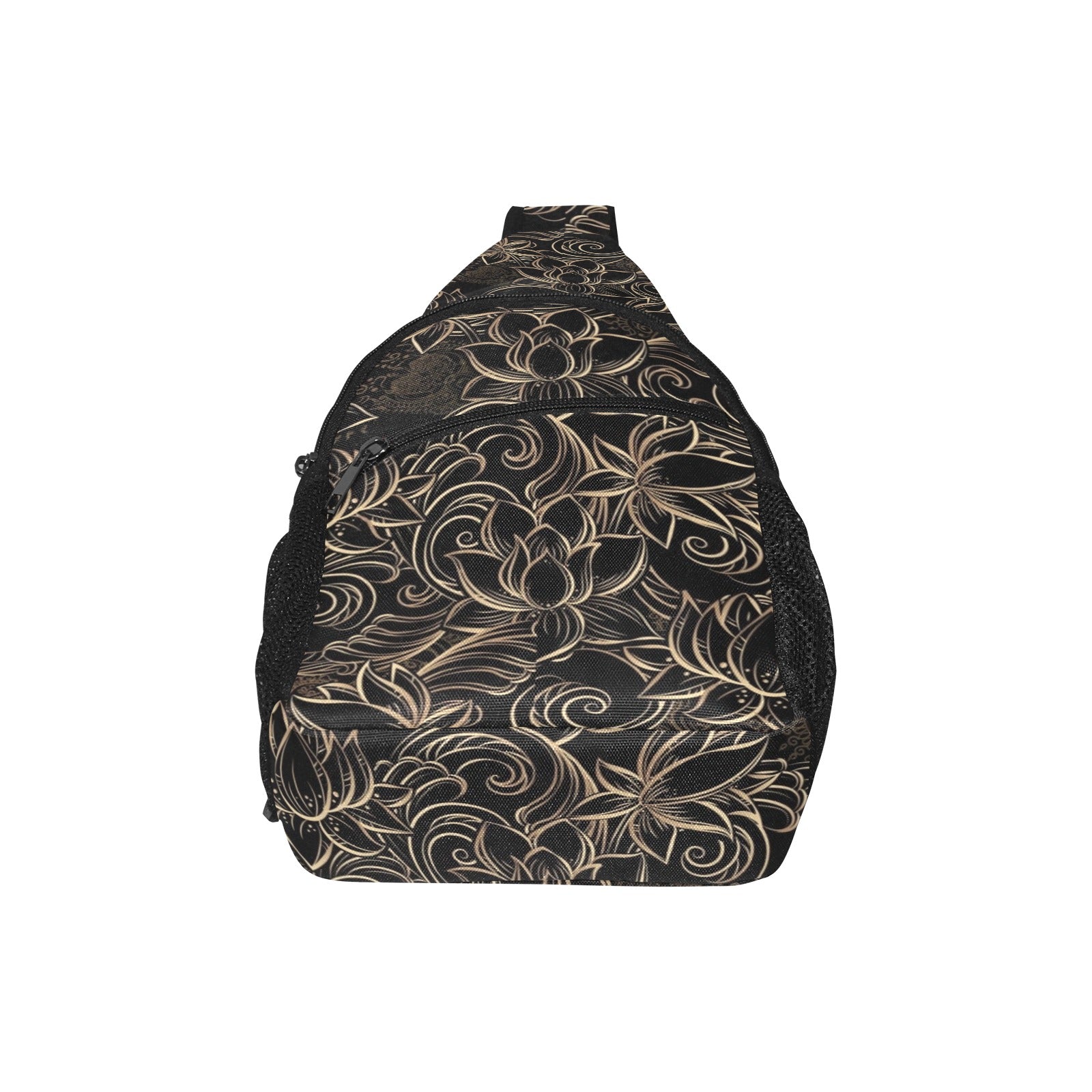 luxurious gold lotus waterlily black background All Over Print Chest Bag