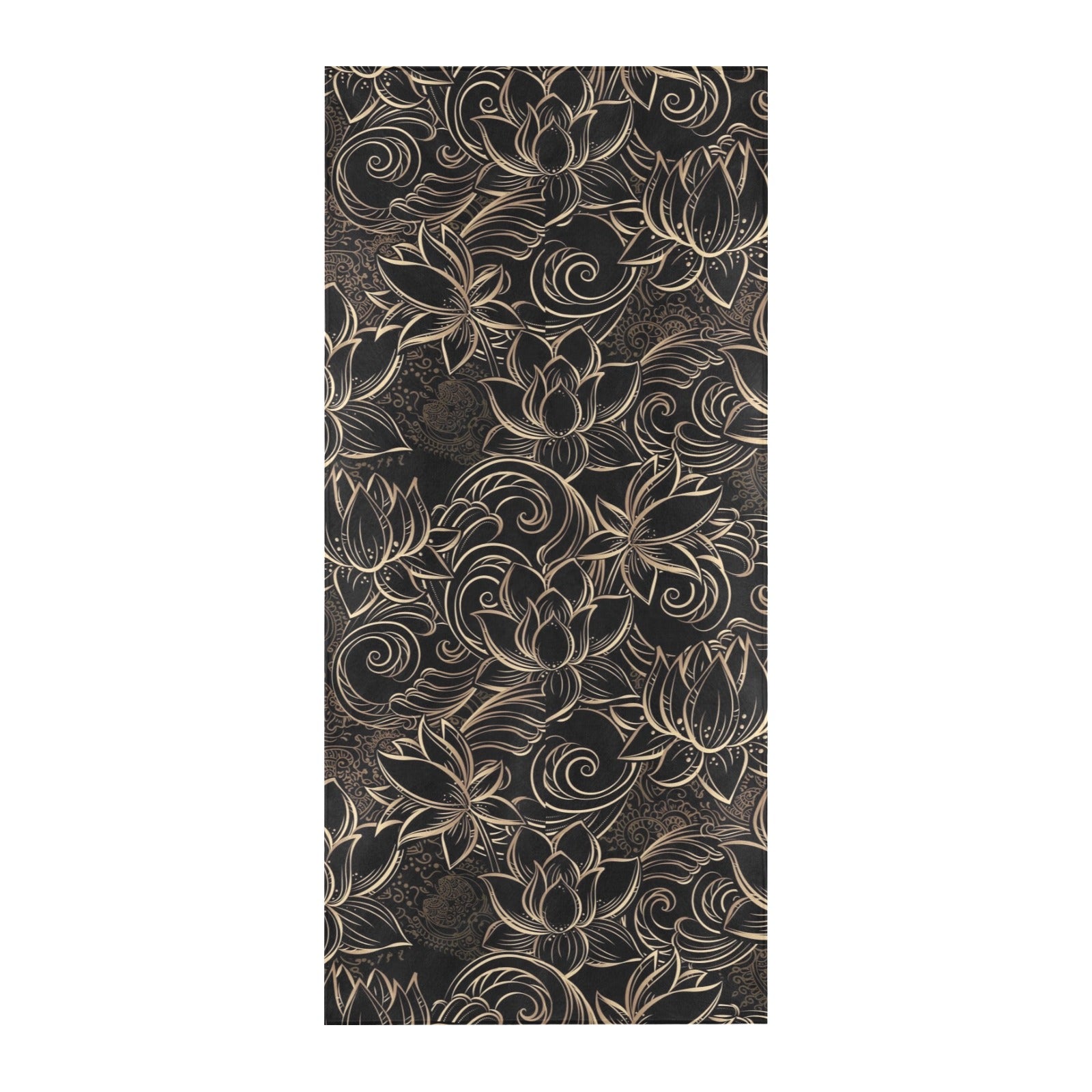 luxurious gold lotus waterlily black background Beach Towel