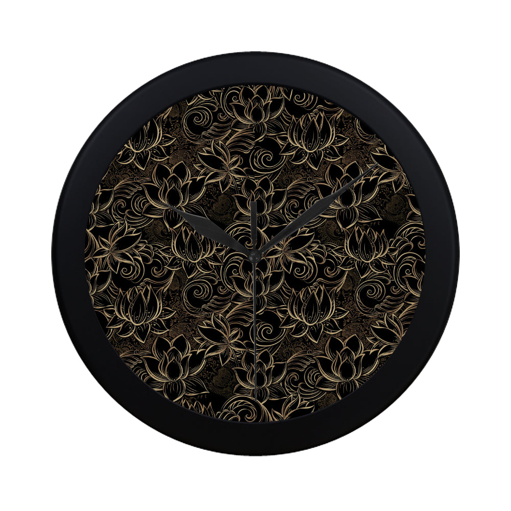 luxurious gold lotus waterlily black background Elegant Black Wall Clock is a uniqued design and limited item. It made to order, hand printed, and sewn with love in our factory.