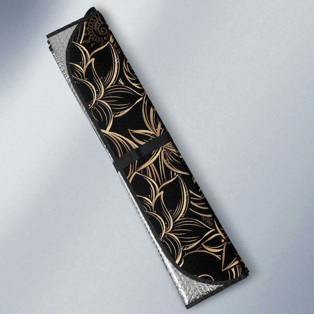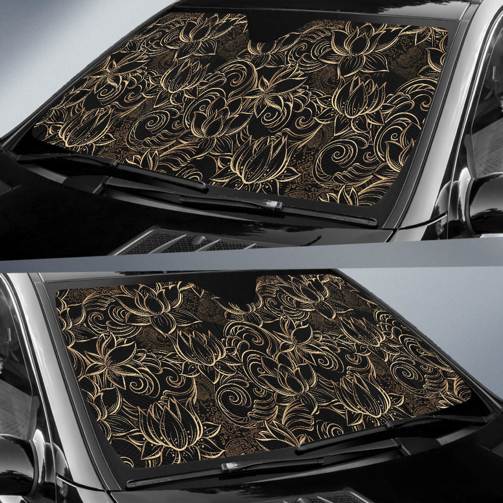 Luxurious Gold Lotus Waterlily Black Background Car Sun Shade