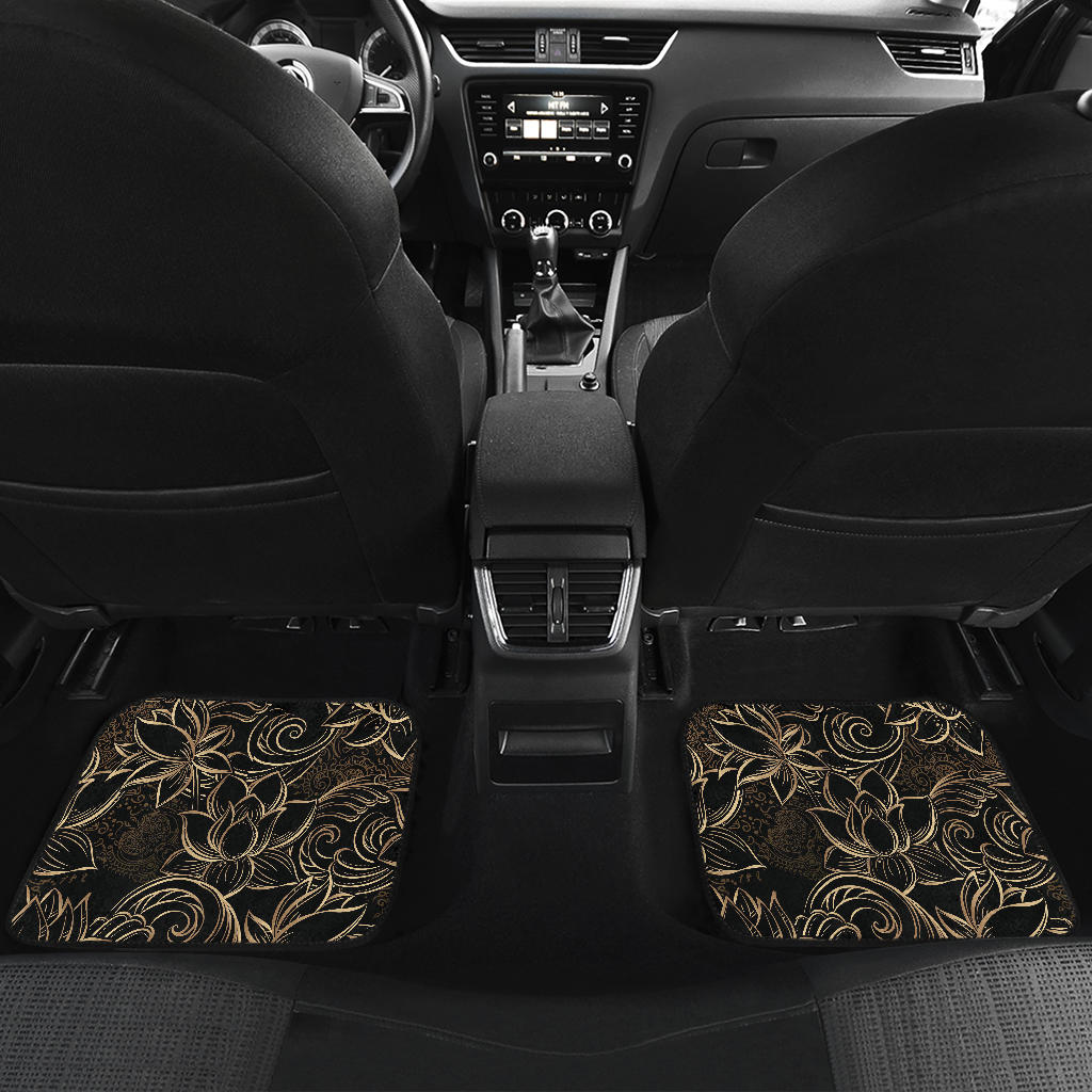 luxurious gold lotus waterlily black background Front and Back Car Mats are uniqued design and limited item. It made to order, hand printed, and sewn with love in our factory.