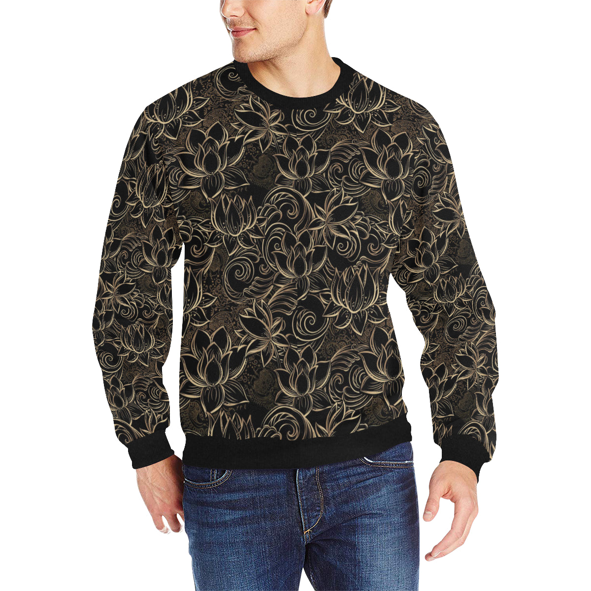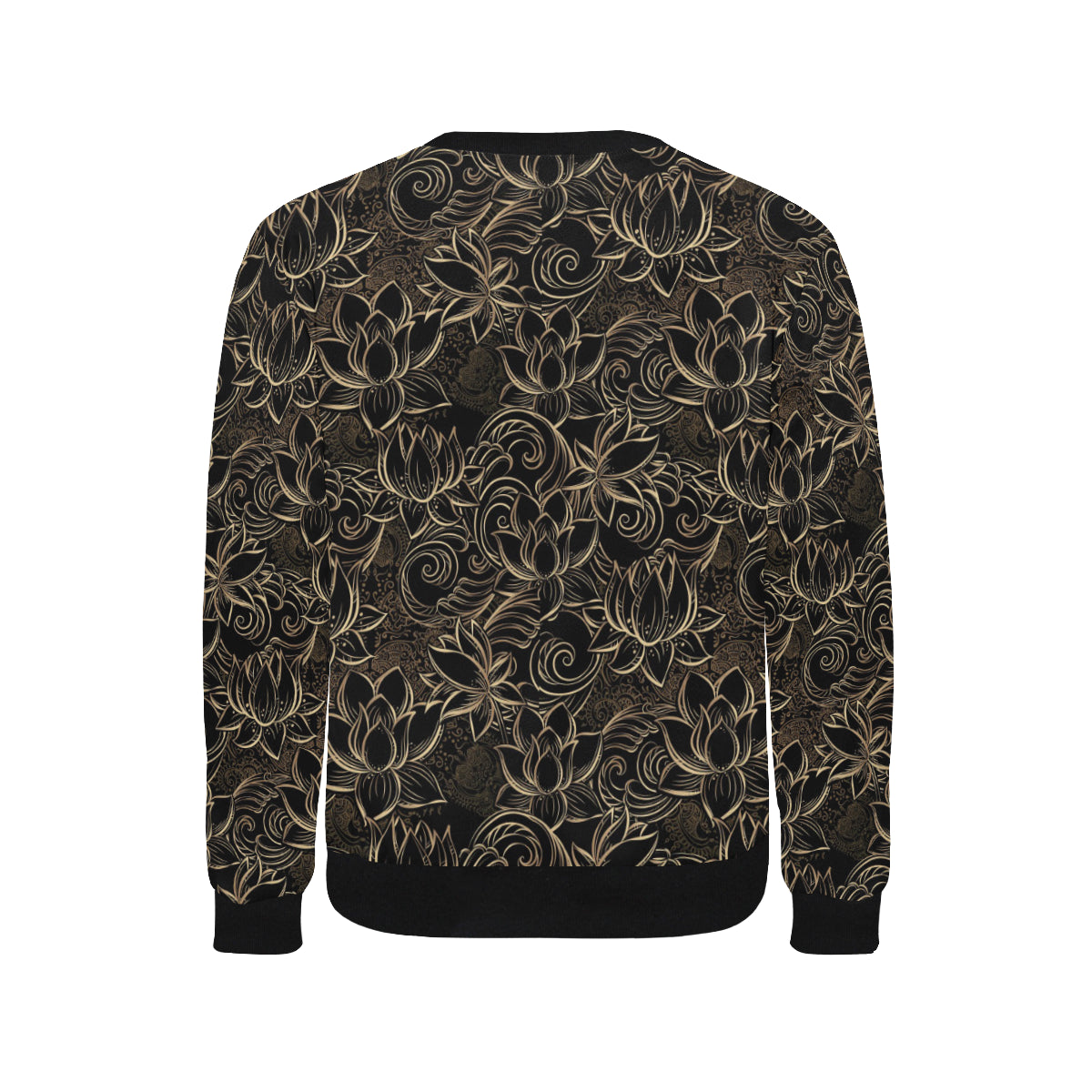 luxurious gold lotus waterlily black background Men's Crew Neck Sweatshirt is a uniqued design and limited item. It made to order, hand printed, and sewn with love in our factory.