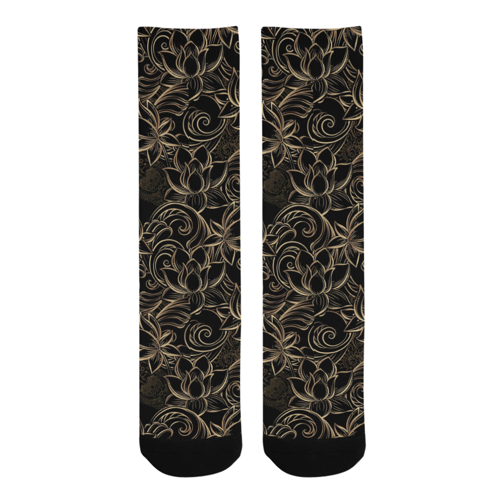 luxurious gold lotus waterlily black background Crew Socks are uniqued design and limited item. It made to order, hand printed, and sewn with love in our factory.