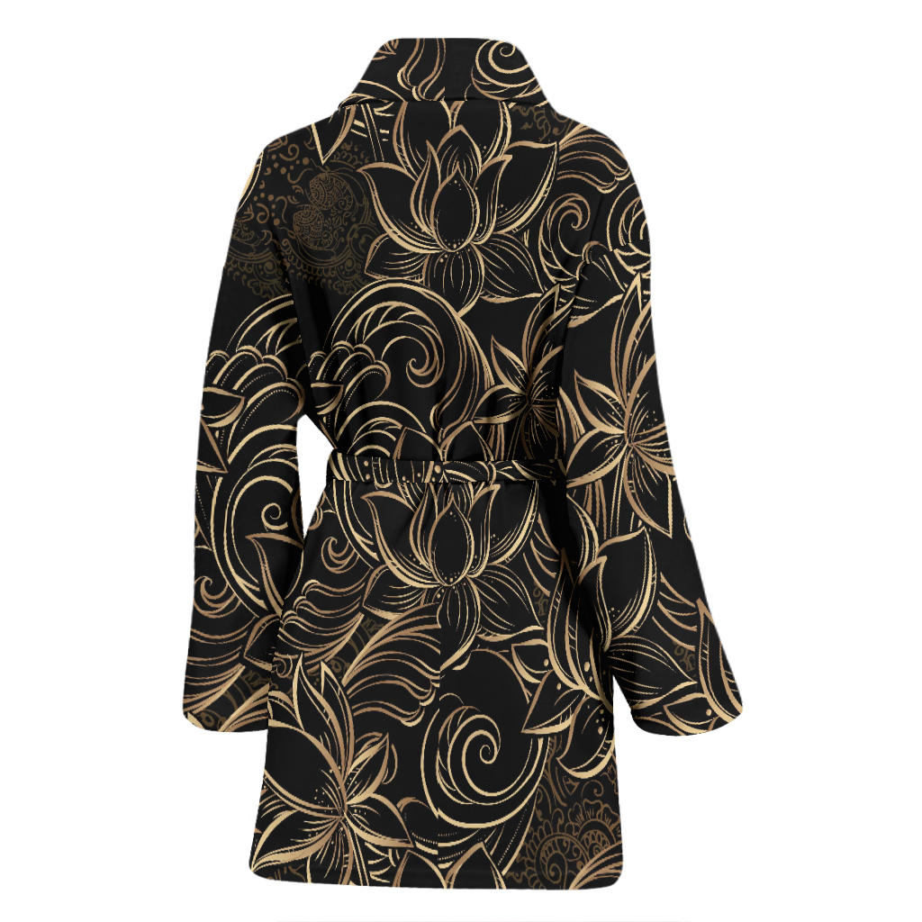Luxurious Gold Lotus Waterlily Black Background Women'S Bathrobe