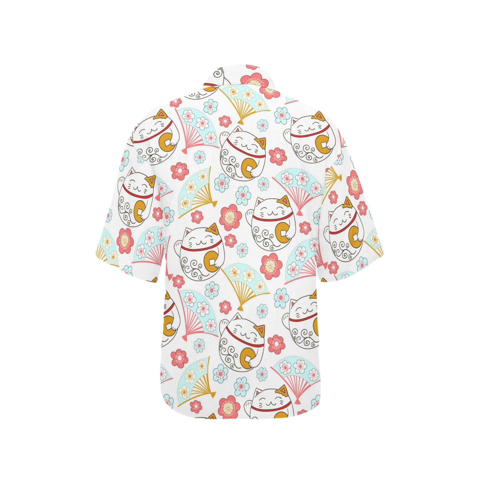 Maneki neko cat fan sakura Women's All Over Print Hawaiian Shirt