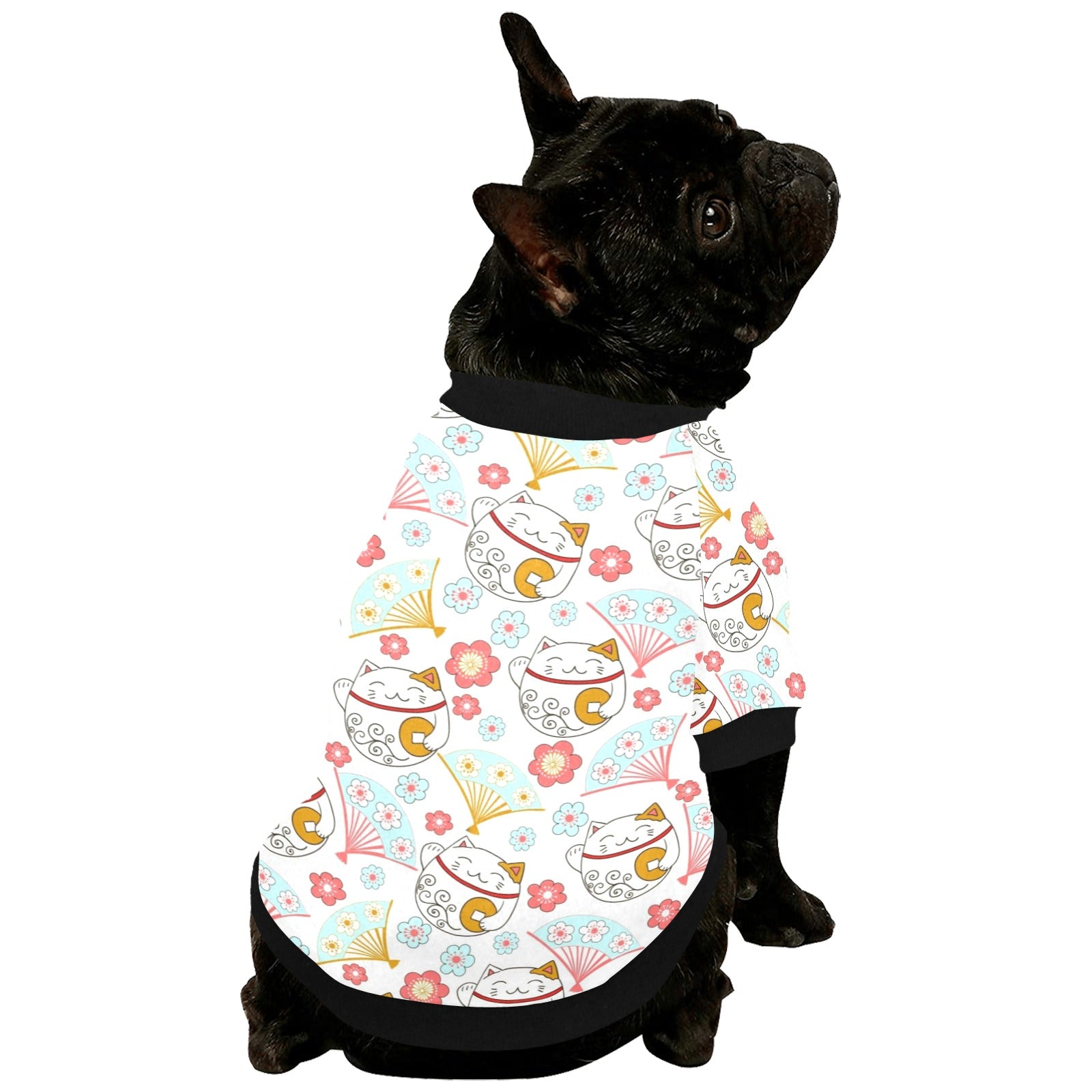 Maneki neko cat fan sakura All Over Print Pet Dog Round Neck Fuzzy Shirt