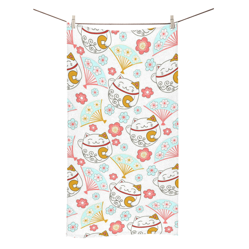 Maneki neko cat fan sakura Bath Towel 30"x56" is a uniqued design and limited item. It made to order, hand printed, and sewn with love in our factory.