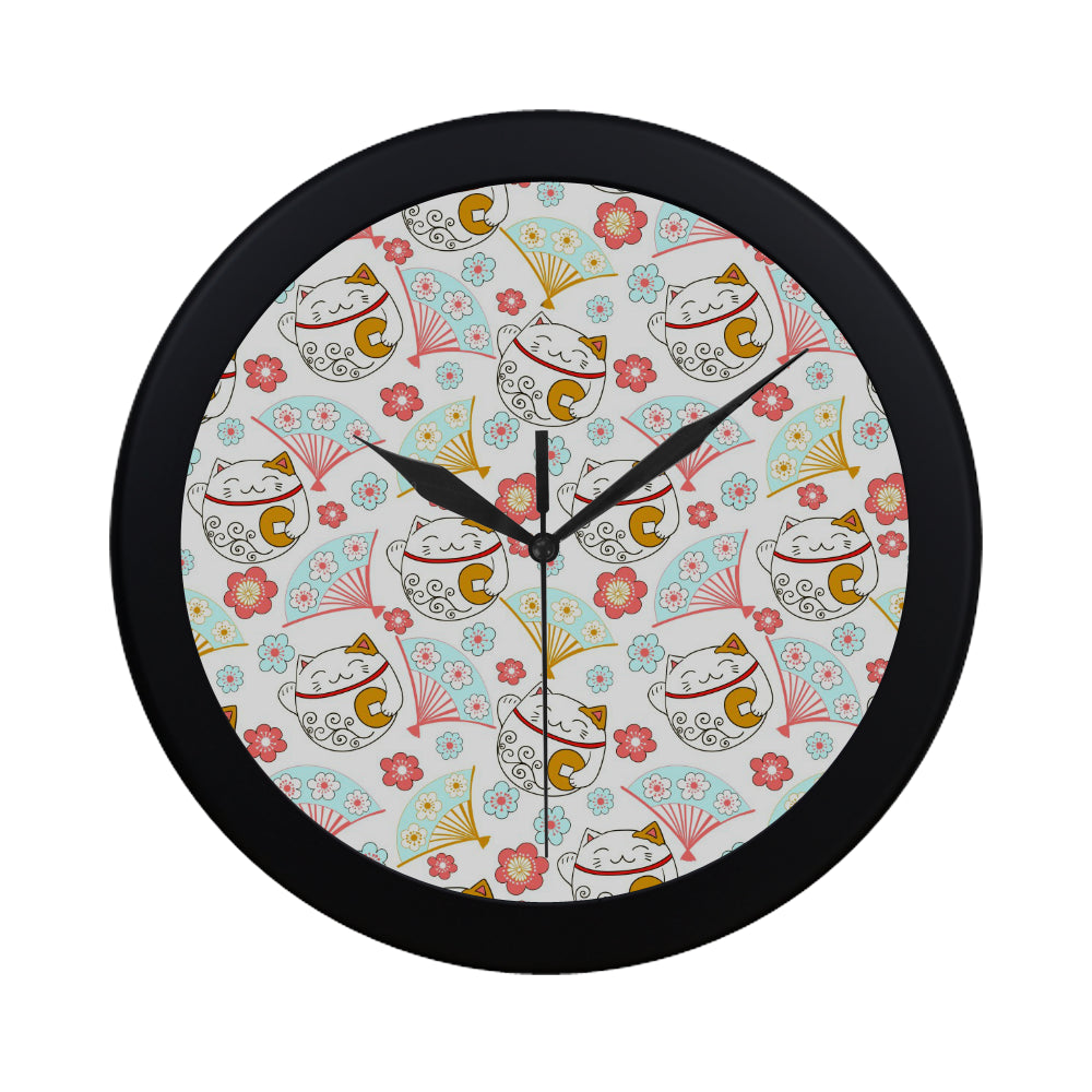 Maneki neko cat fan sakura Elegant Black Wall Clock is a uniqued design and limited item. It made to order, hand printed, and sewn with love in our factory.