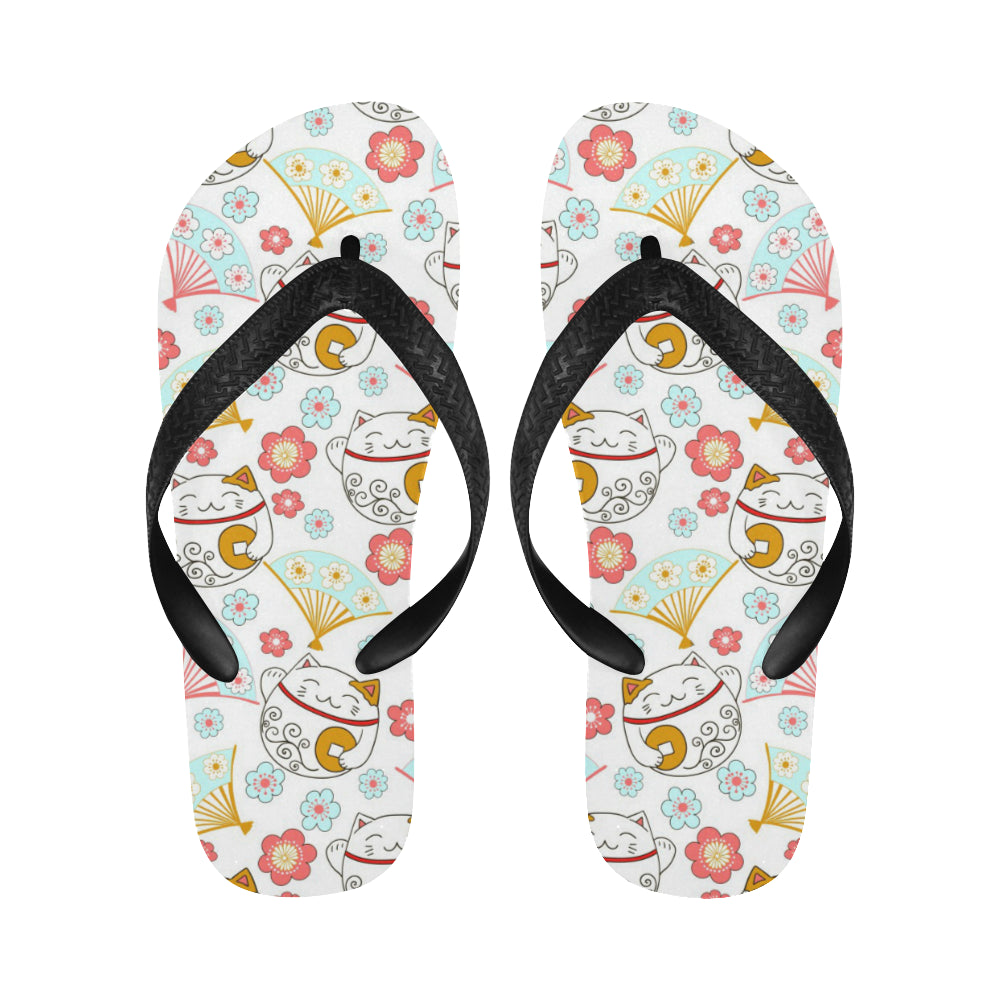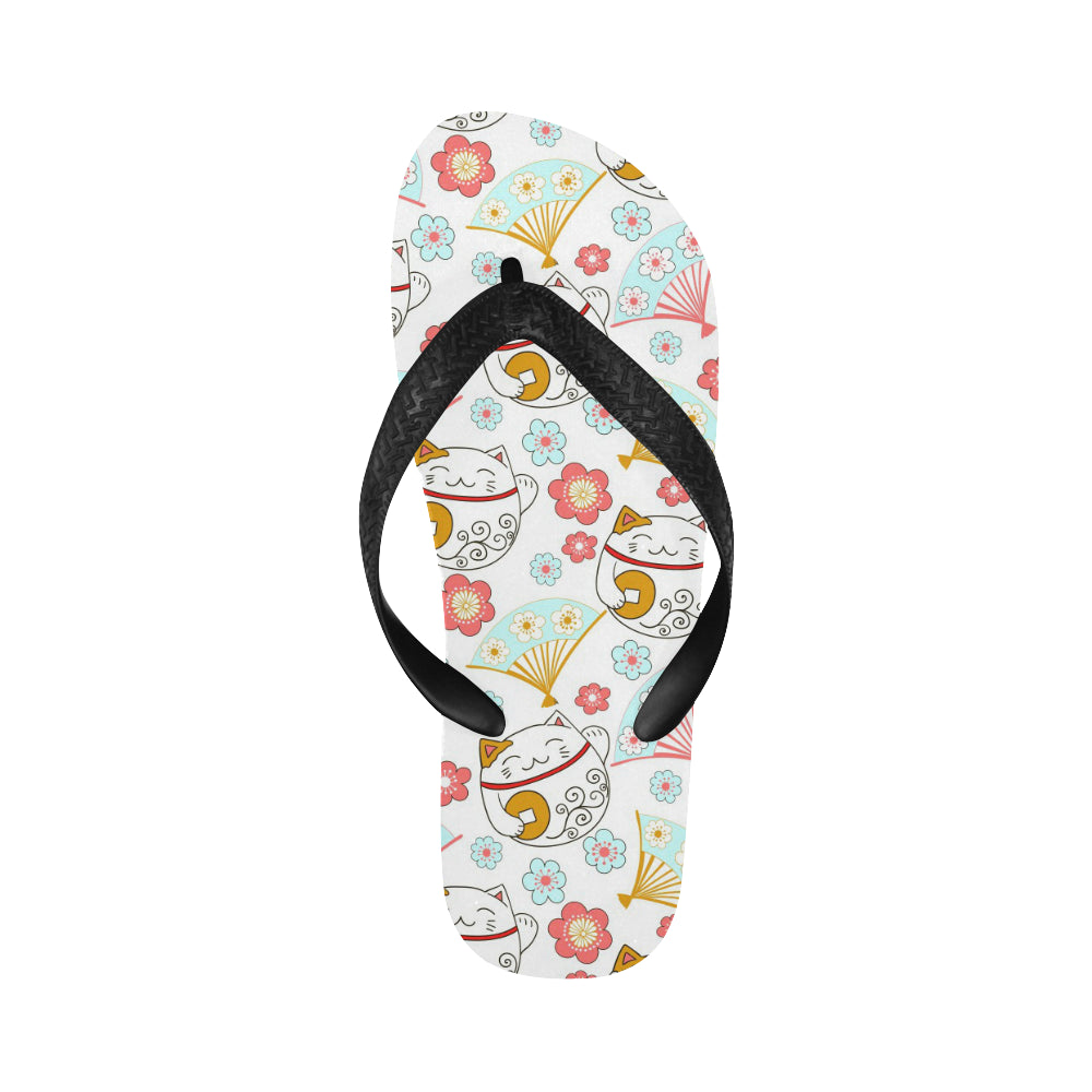 Maneki neko cat fan sakura Unisex Flip Flops is a uniqued design and limited item. It made to order, hand printed, and sewn with love in our factory.