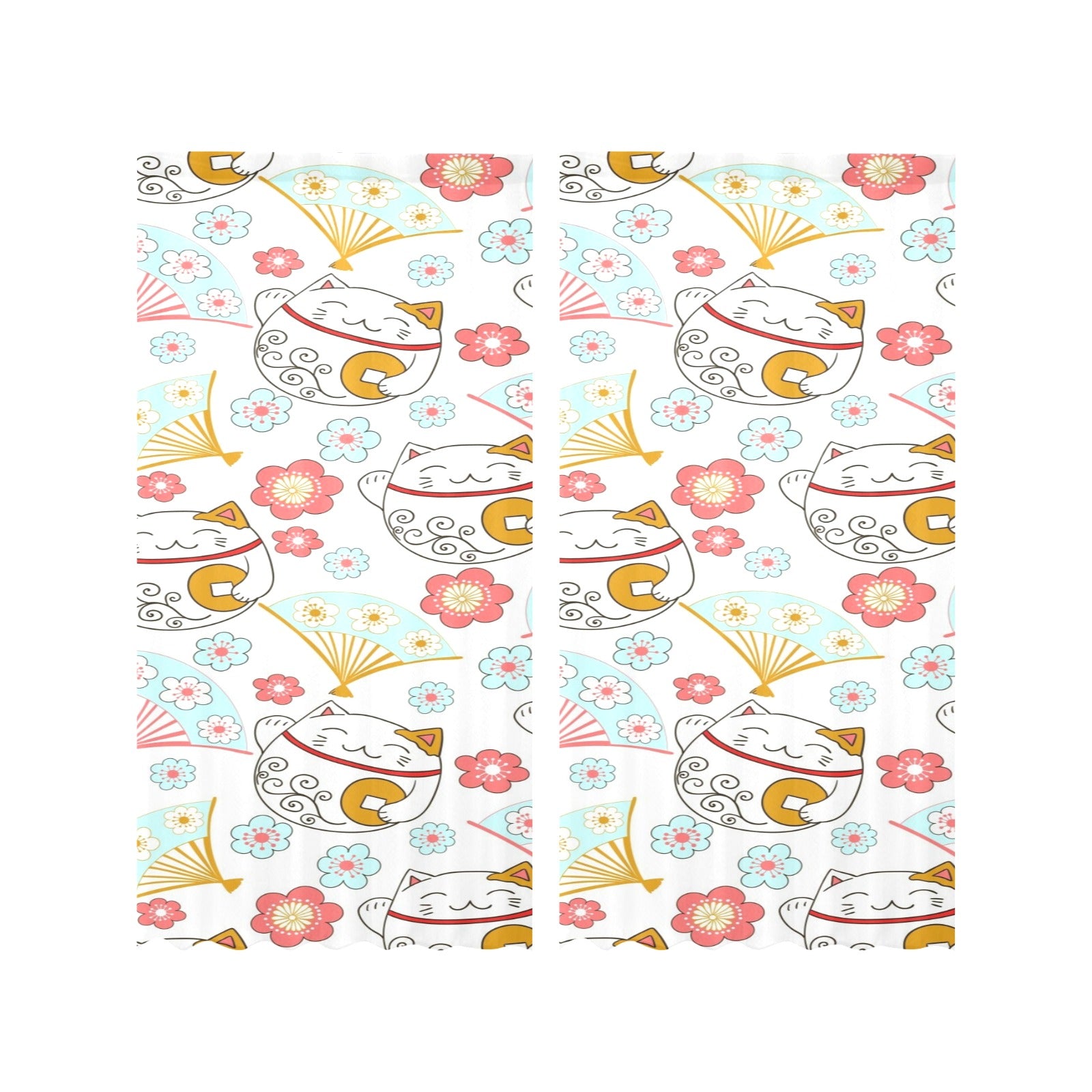 Maneki neko cat fan sakura Gauze Curtain