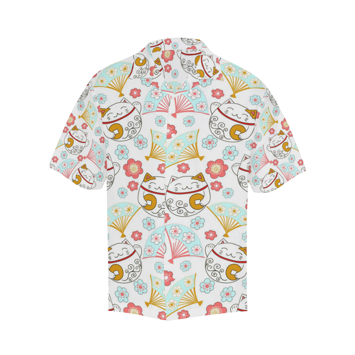 Maneki neko cat fan sakura Men's All Over Print Hawaiian Shirt is a uniqued design and limited item. It made to order, hand printed, and sewn with love in our factory.