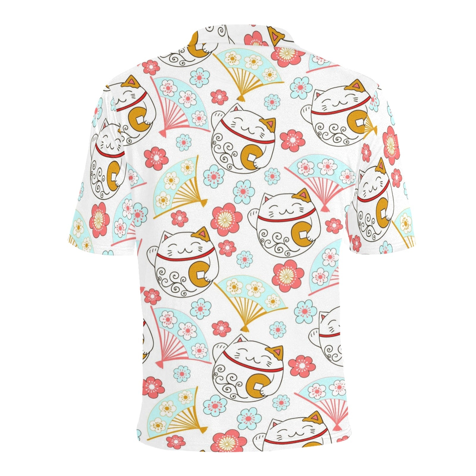 Maneki neko cat fan sakura Men's All Over Print Polo Shirt