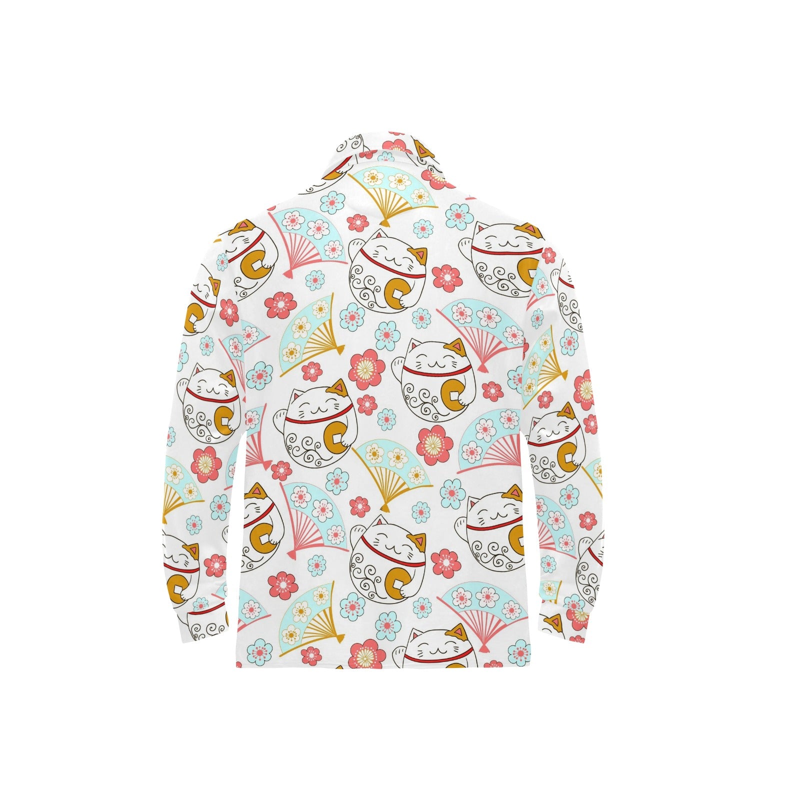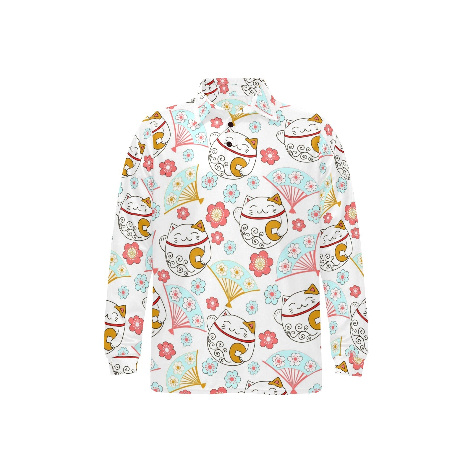 Maneki neko cat fan sakura Men's Long Sleeve Polo Shirt
