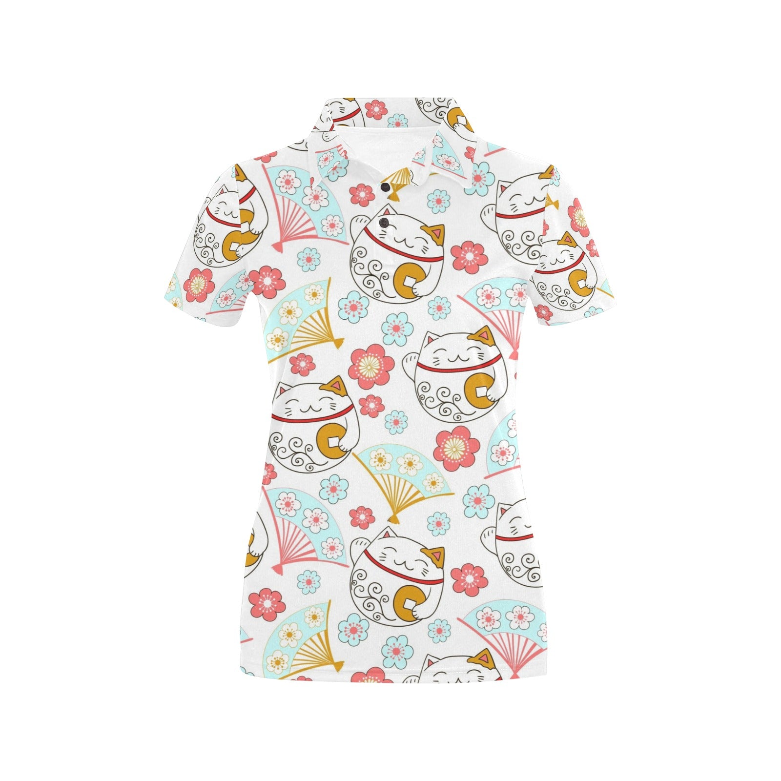 Maneki neko cat fan sakura Women's All Over Print Polo Shirt