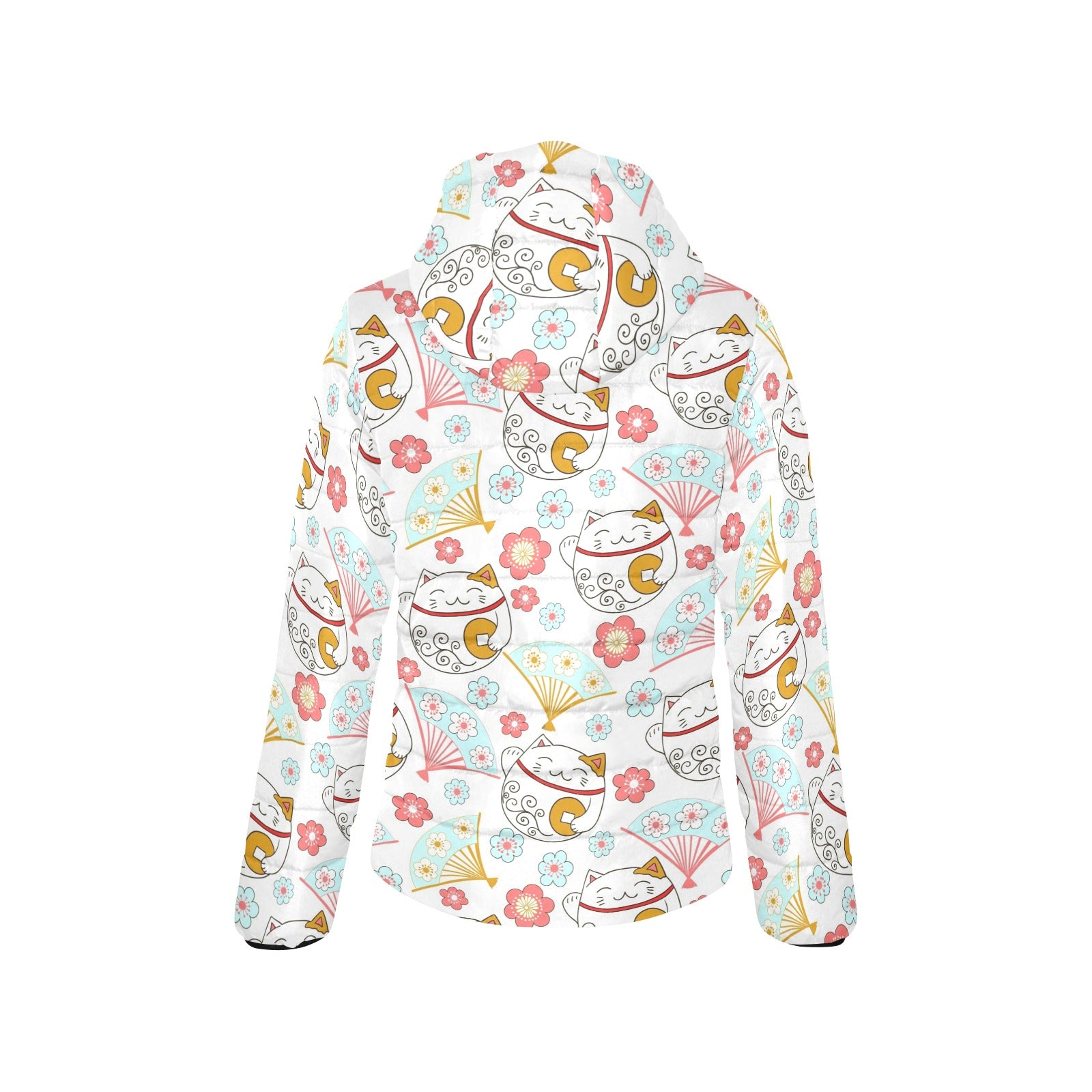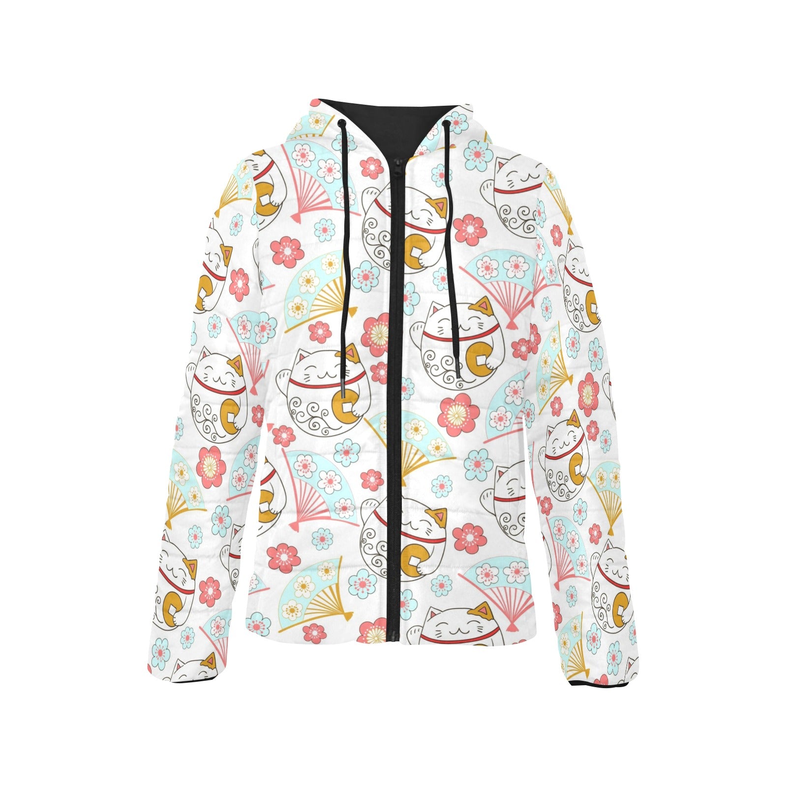 Maneki neko cat fan sakura Women's Padded Hooded Jacket
