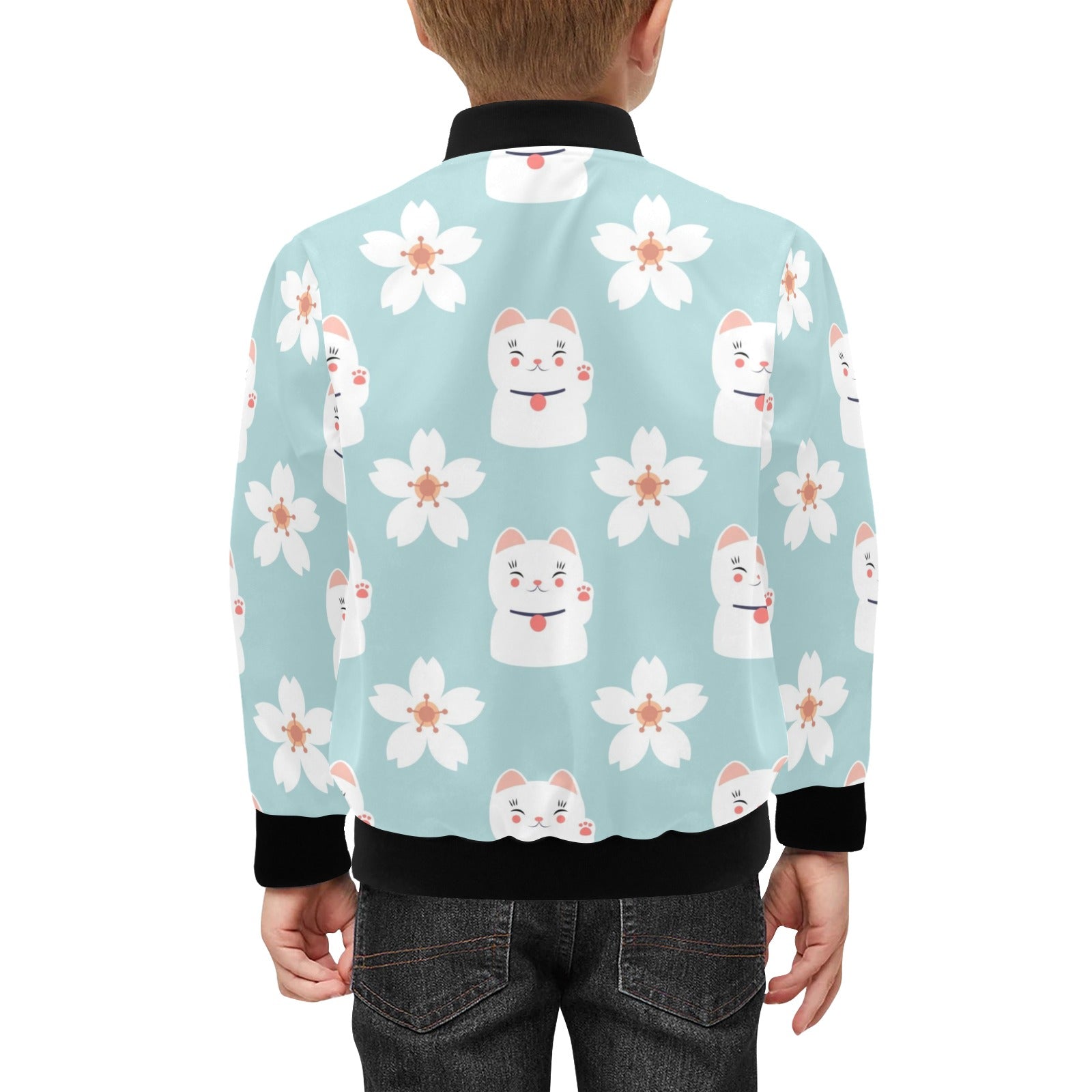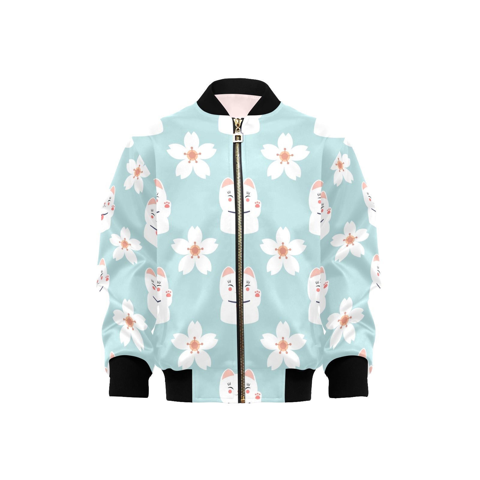 Maneki neko cat sakura Kids' Boys' Girls' Bomber Jacket
