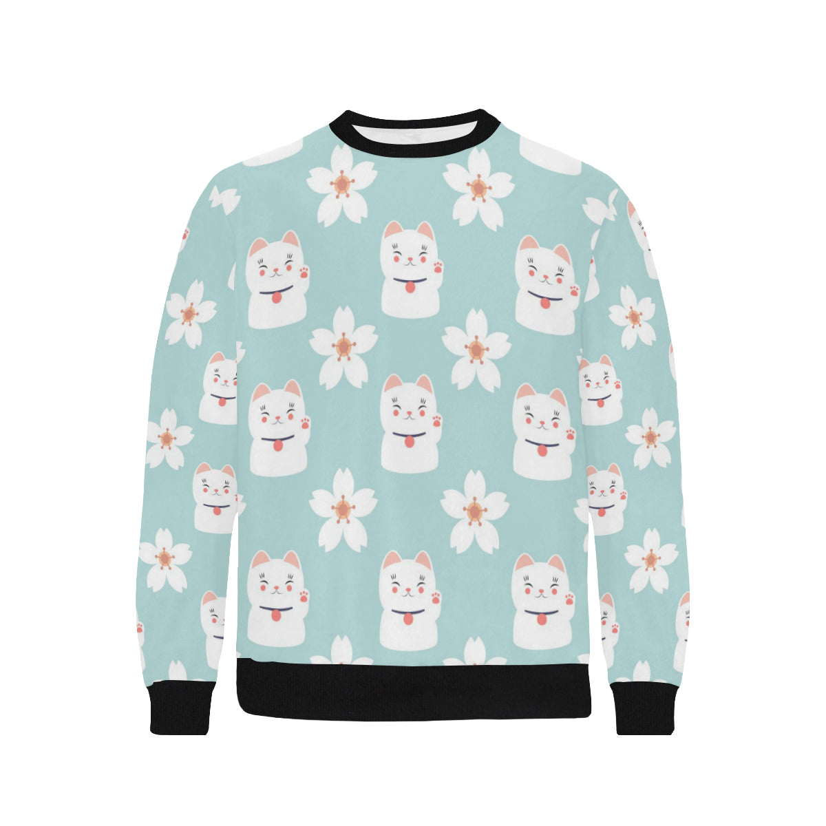 Maneki neko cat sakura Men's Crew Neck Sweatshirt