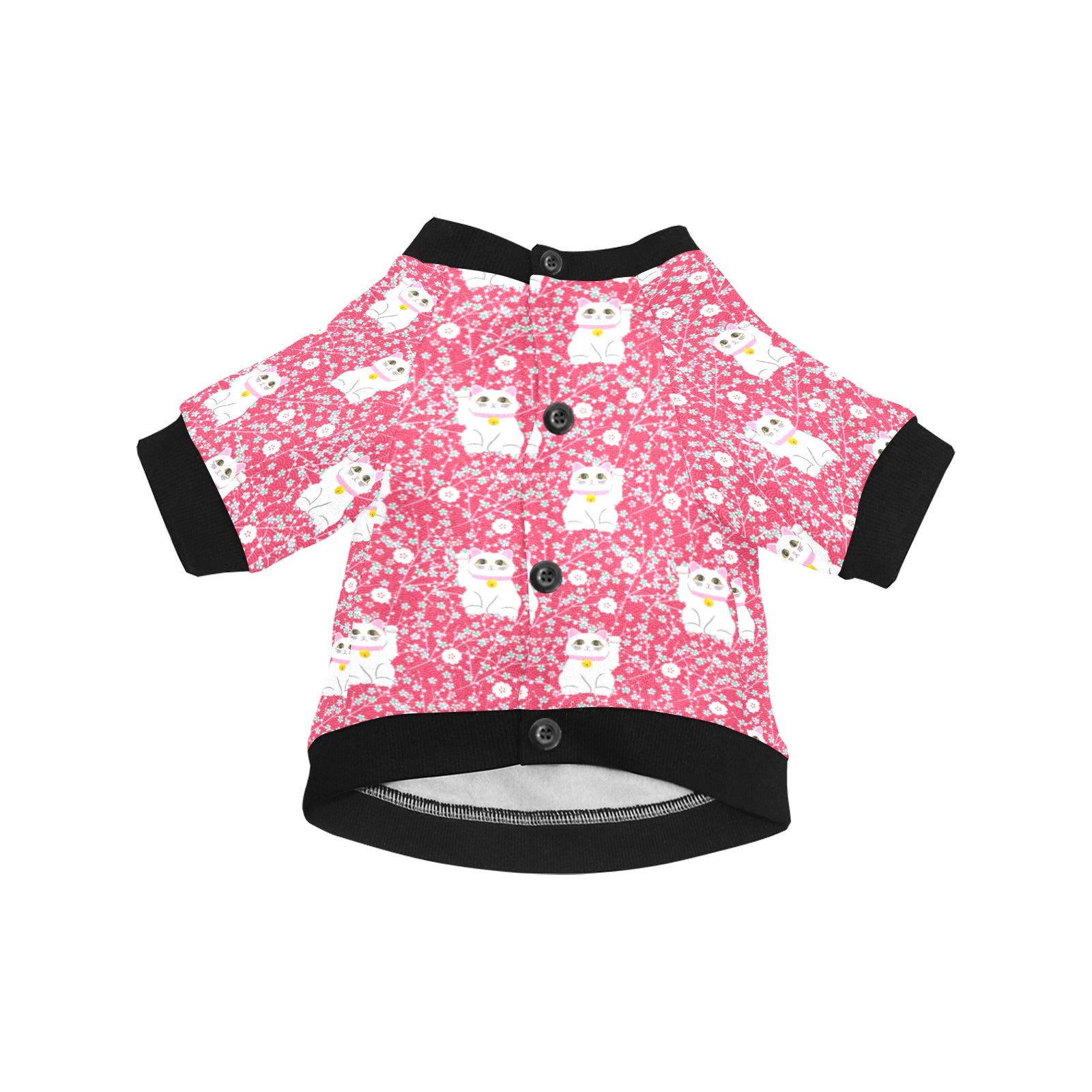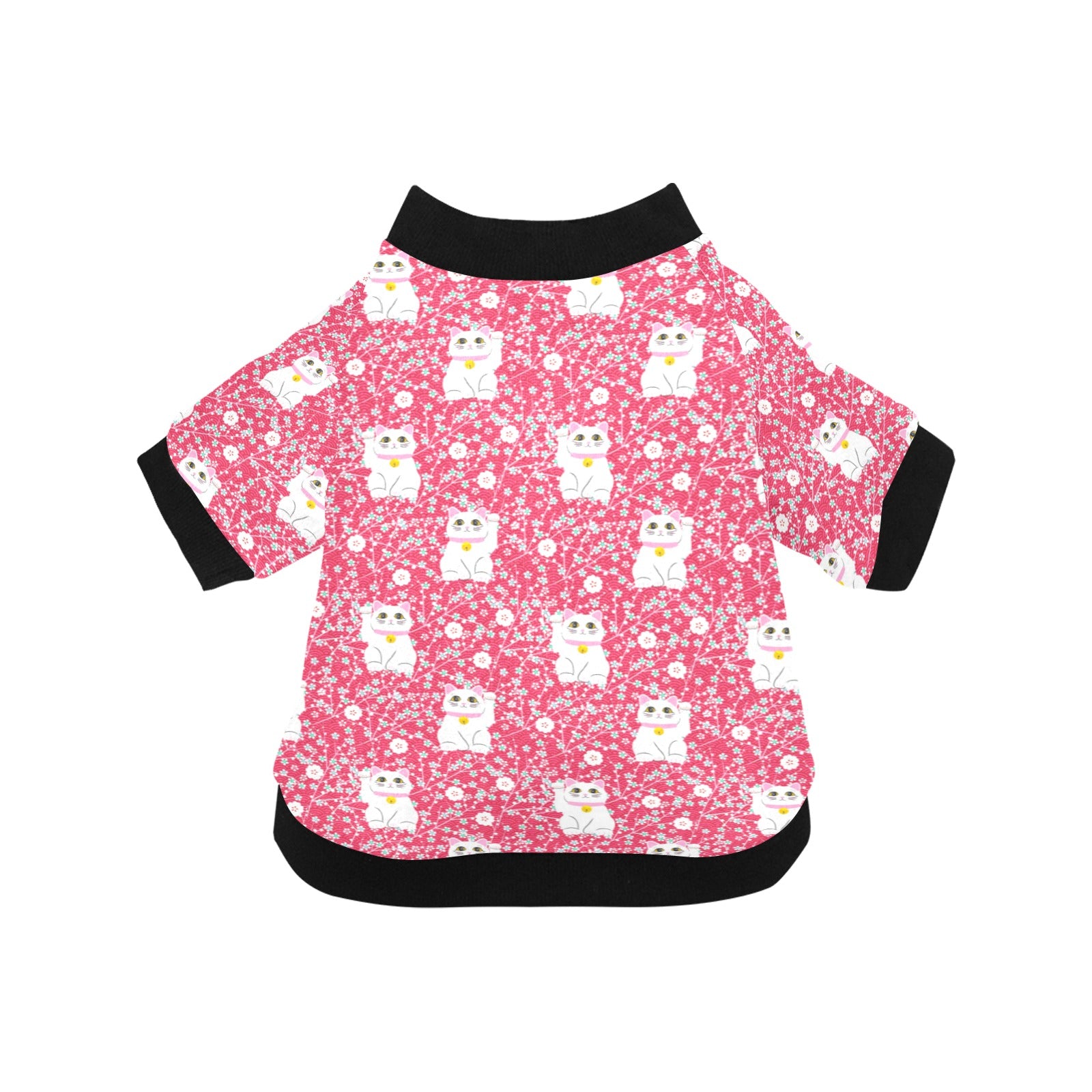 Maneki neko cat sakura pink background All Over Print Pet Dog Round Neck Fuzzy Shirt
