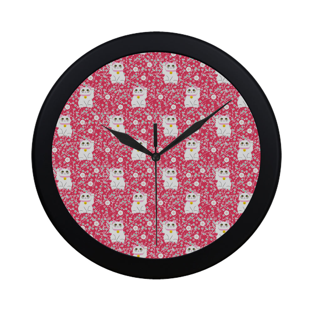 Maneki neko cat sakura pink background Elegant Black Wall Clock is a uniqued design and limited item. It made to order, hand printed, and sewn with love in our factory.