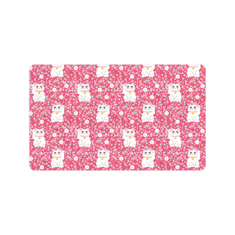 Maneki neko cat sakura pink background Doormat