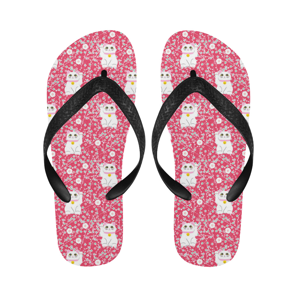 Maneki neko cat sakura pink background Unisex Flip Flops