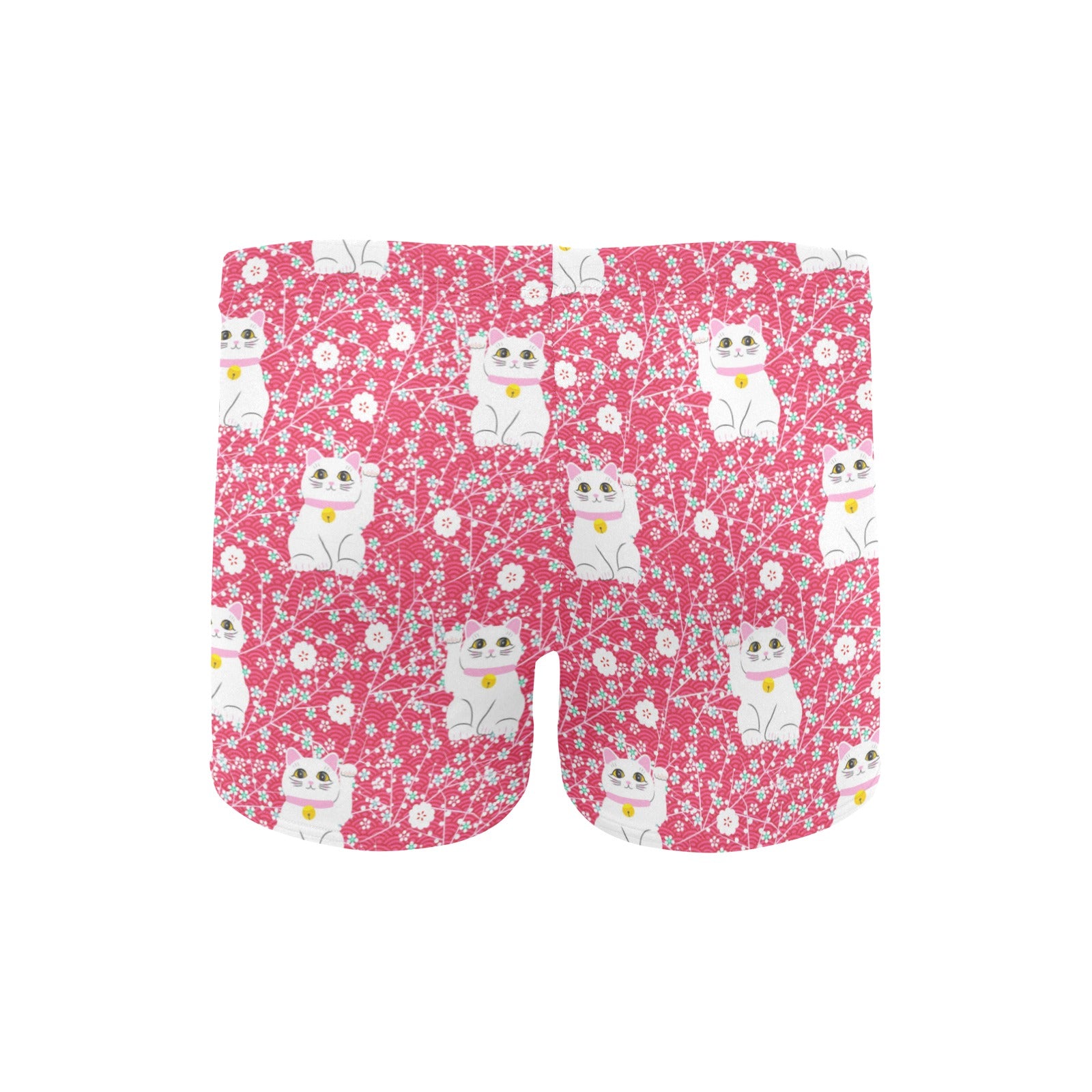Maneki neko cat sakura pink background Men's Swimming Trunks