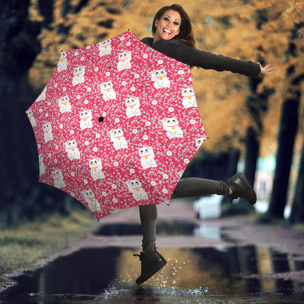 Maneki Neko Cat Sakura Pink Background Umbrella