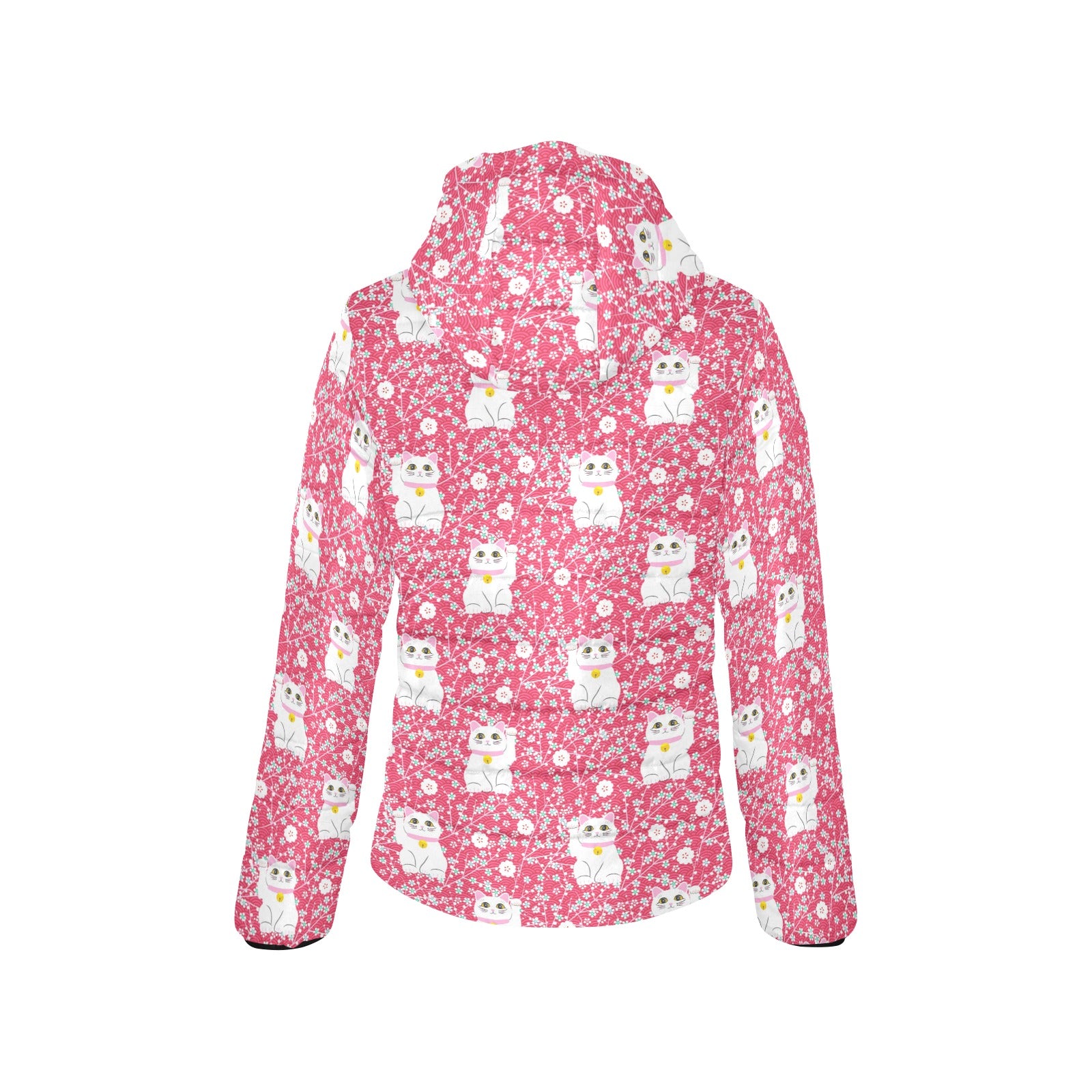 Maneki neko cat sakura pink background Women's Padded Hooded Jacket