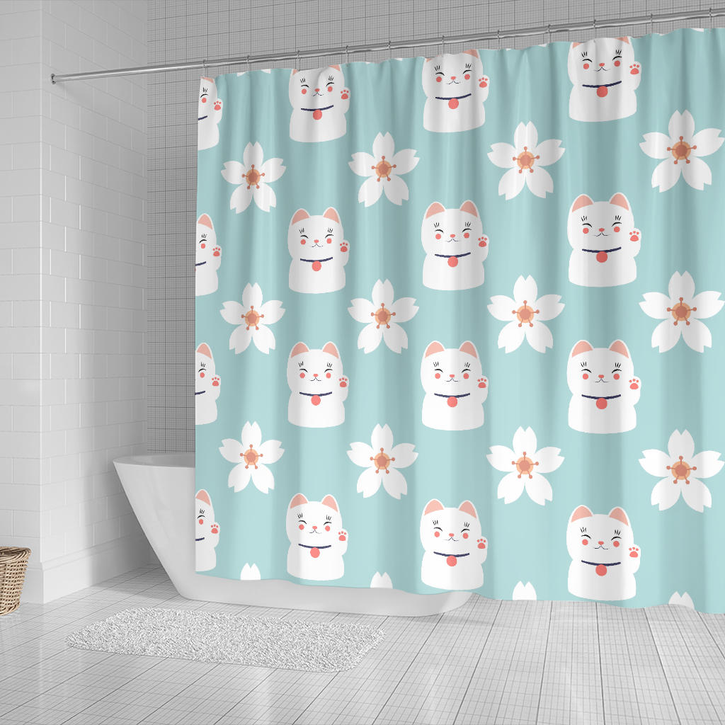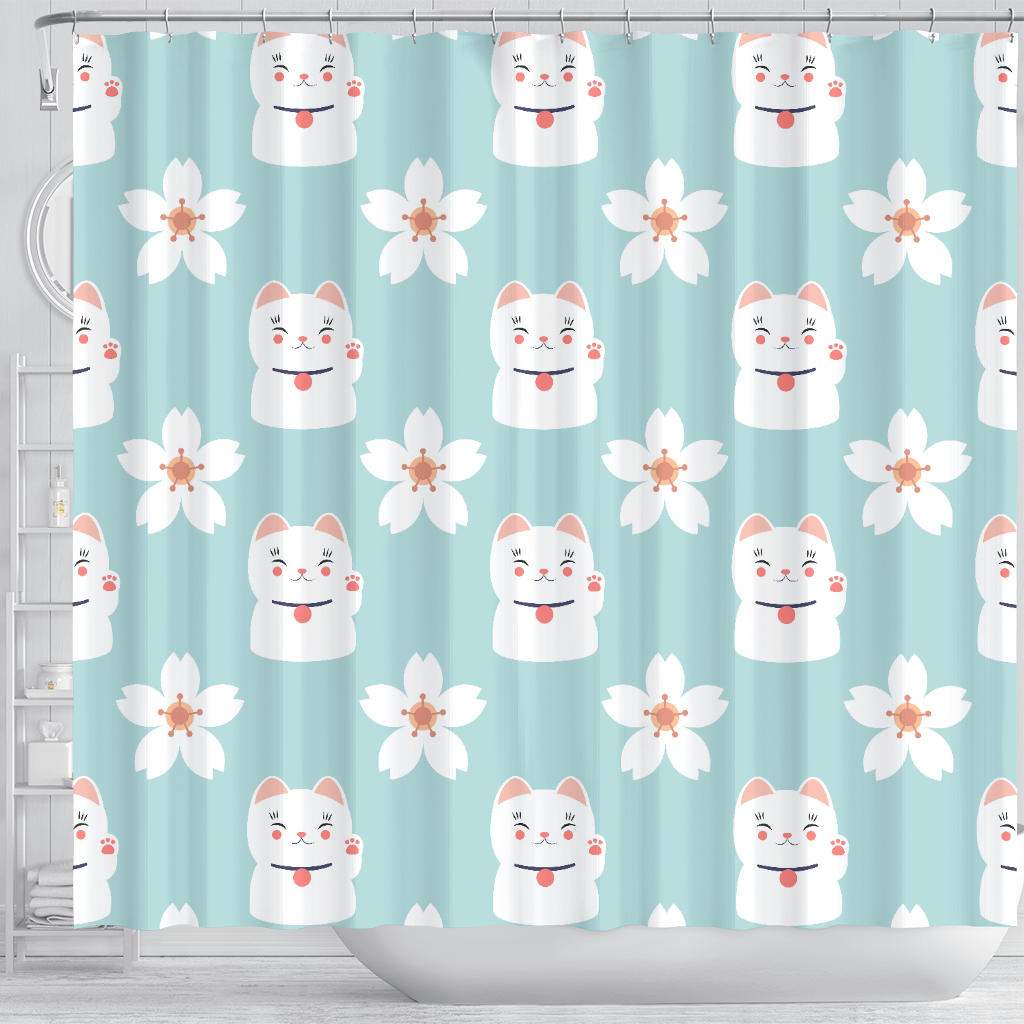 Maneki Neko Lucky Cat Sakura Shower Curtain Fulfilled In US
