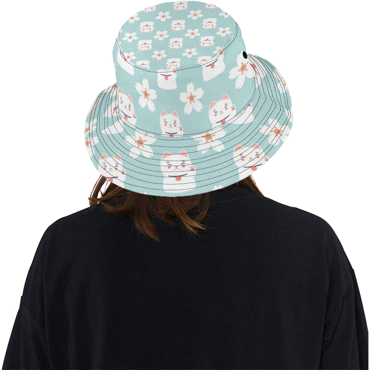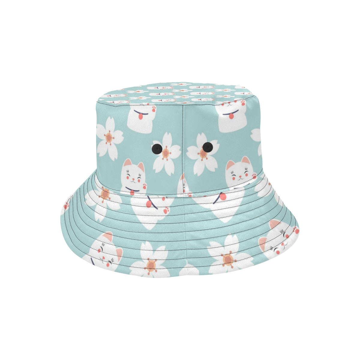 Maneki neko cat sakura Unisex Bucket Hat is a uniqued design and limited item. It made to order, hand printed, and sewn with love in our factory.