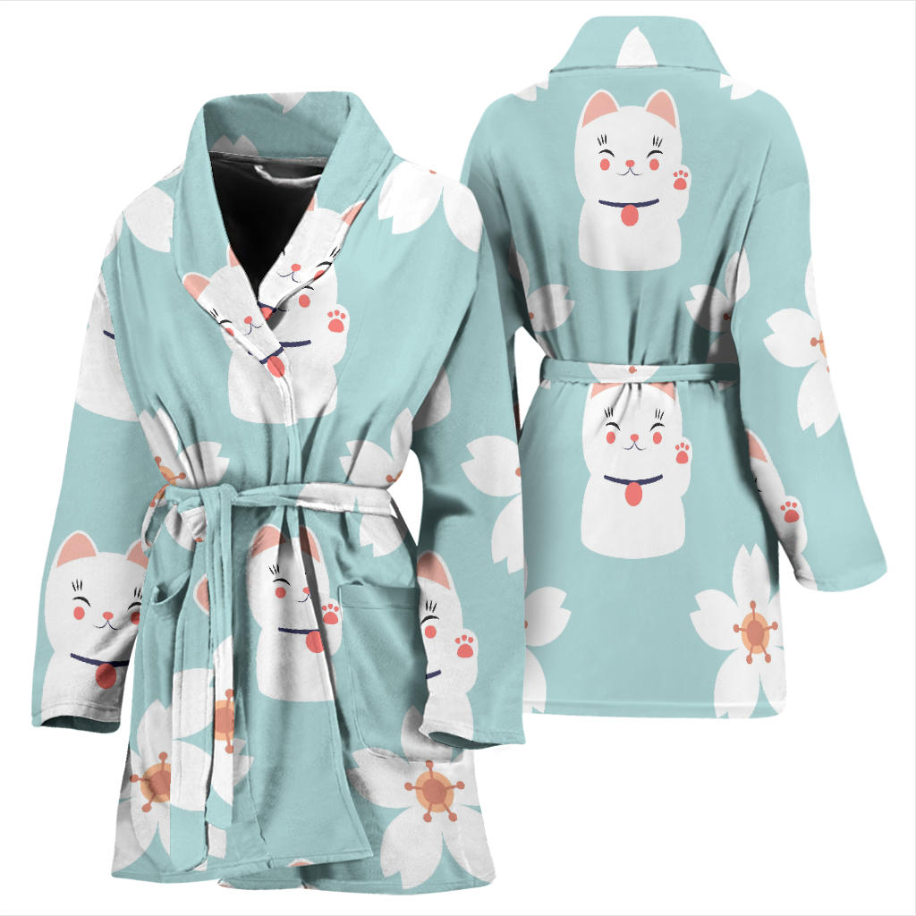 Maneki Neko Lucky Cat Sakura Women'S Bathrobe