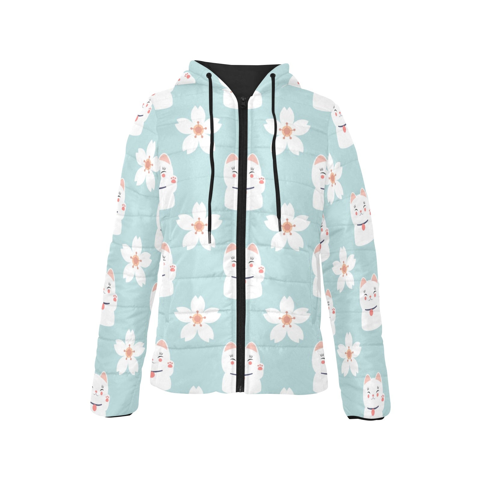 Maneki neko cat sakura Women's Padded Hooded Jacket
