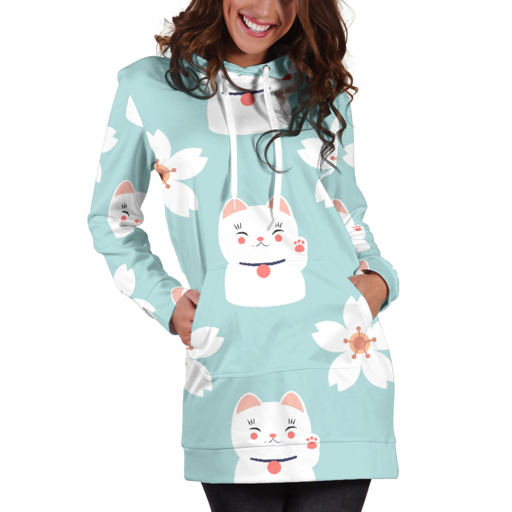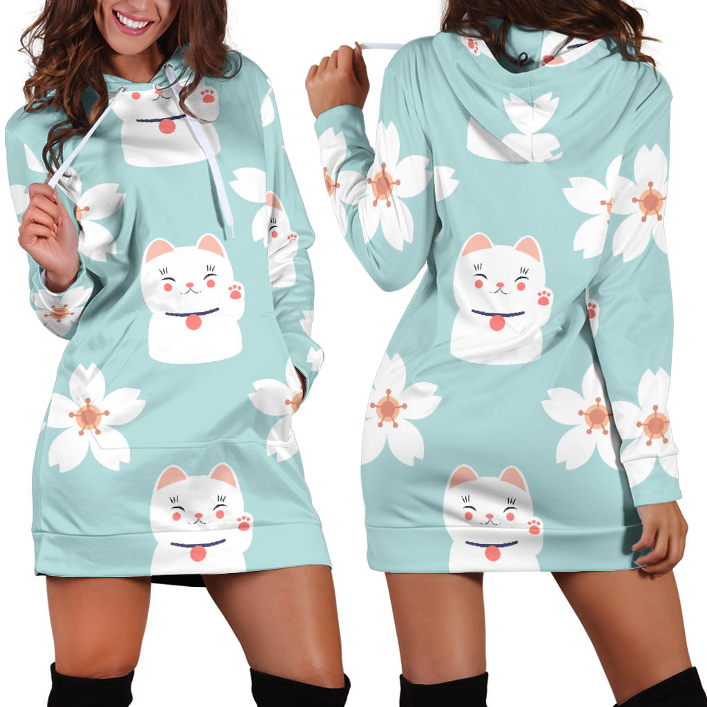 Maneki Neko Lucky Cat Sakura Women'S Hoodie Dress