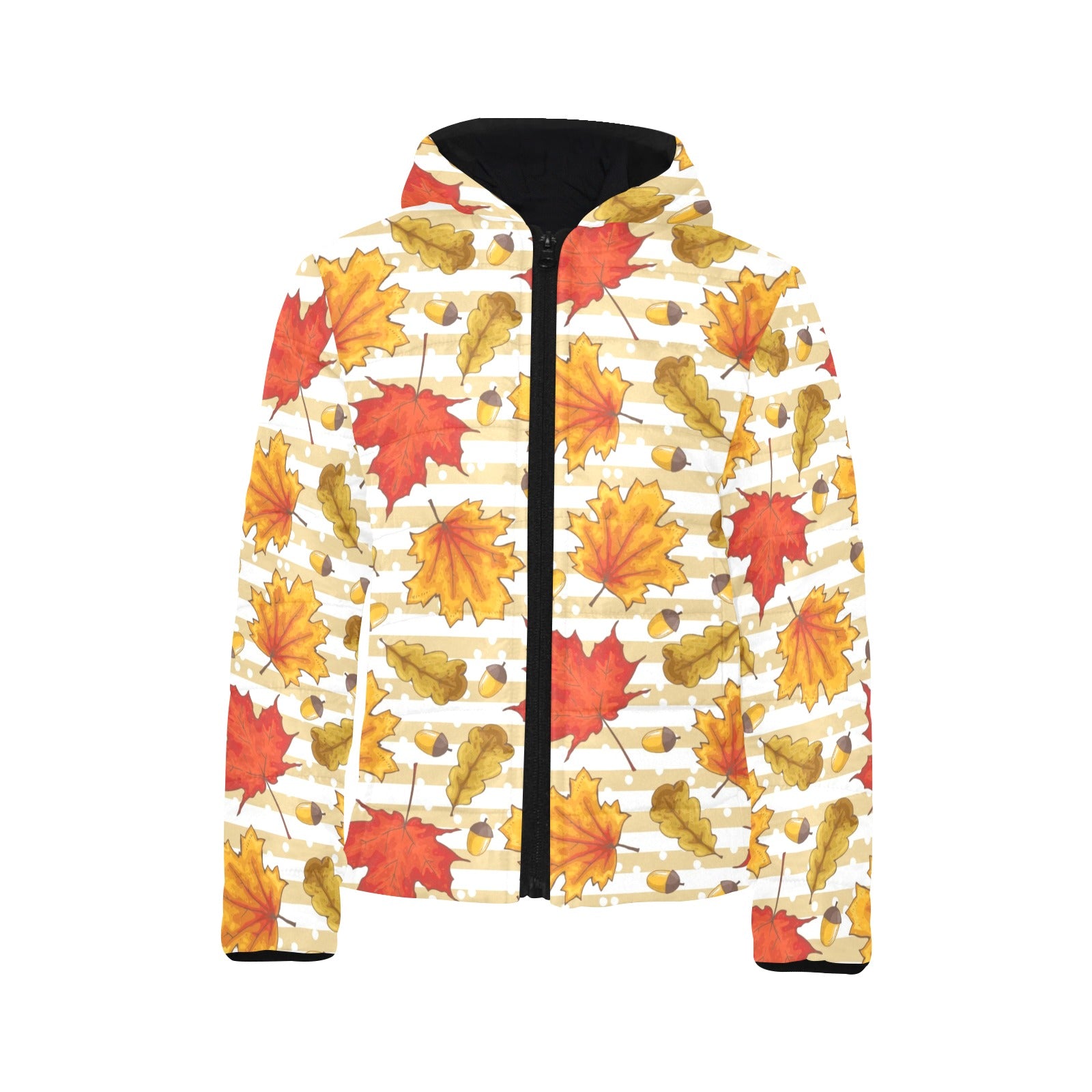 Maple leaf oak leaf acorns beige striped backgroun Kids' Boys' Girls' Padded Hooded Jacket