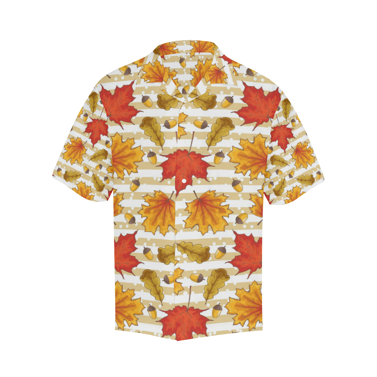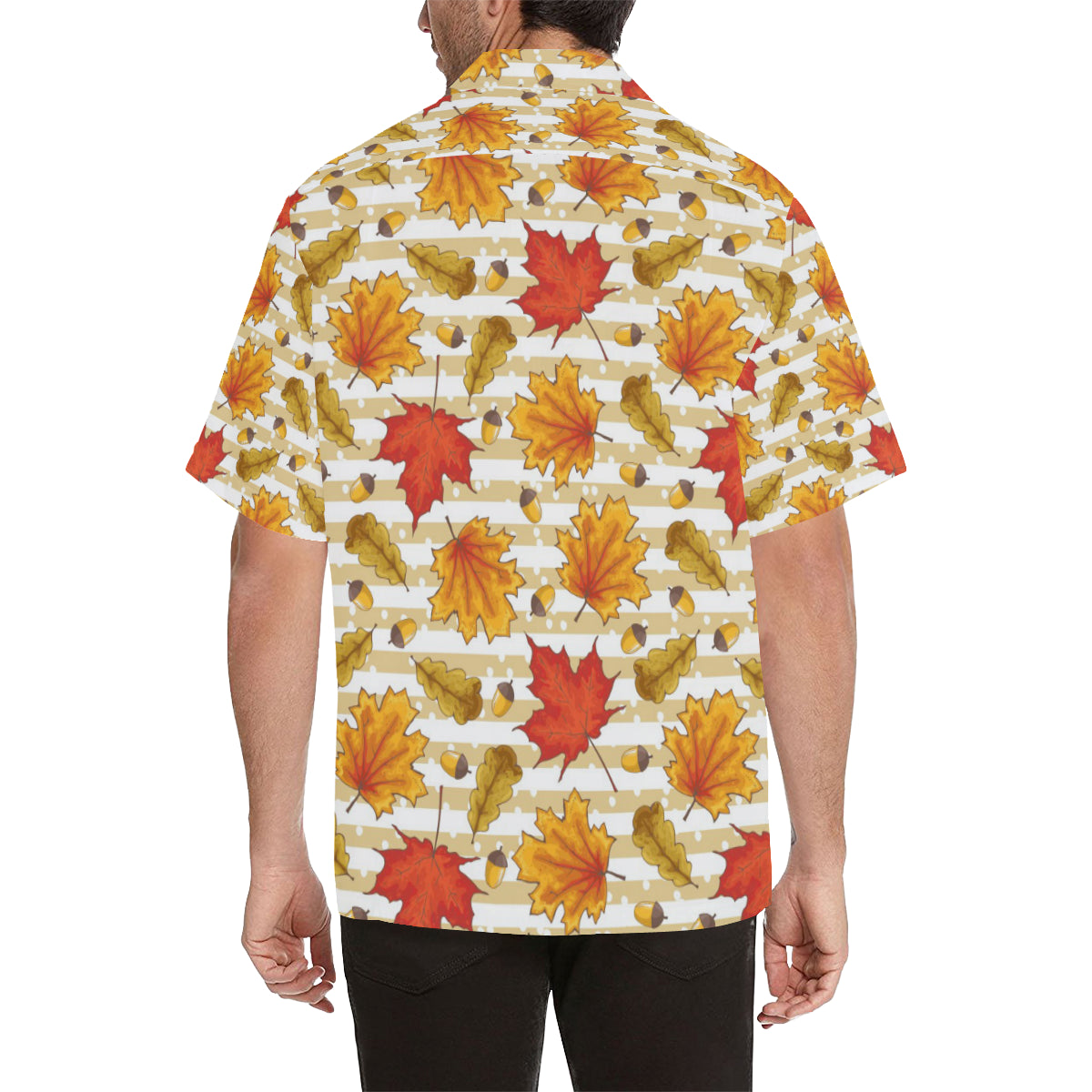 Maple leaf oak leaf acorns beige striped backgroun Men's All Over Print Hawaiian Shirt is a uniqued design and limited item. It made to order, hand printed, and sewn with love in our factory.