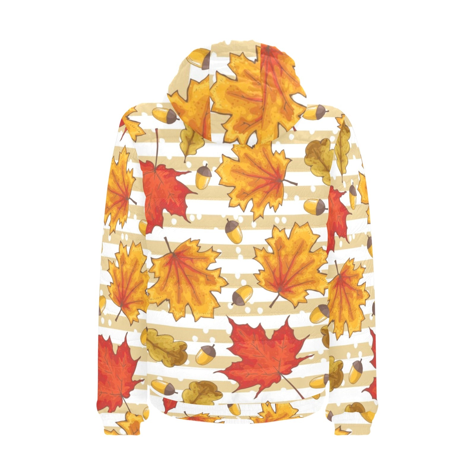 Maple leaf oak leaf acorns beige striped backgroun Men's Padded Hooded Jacket