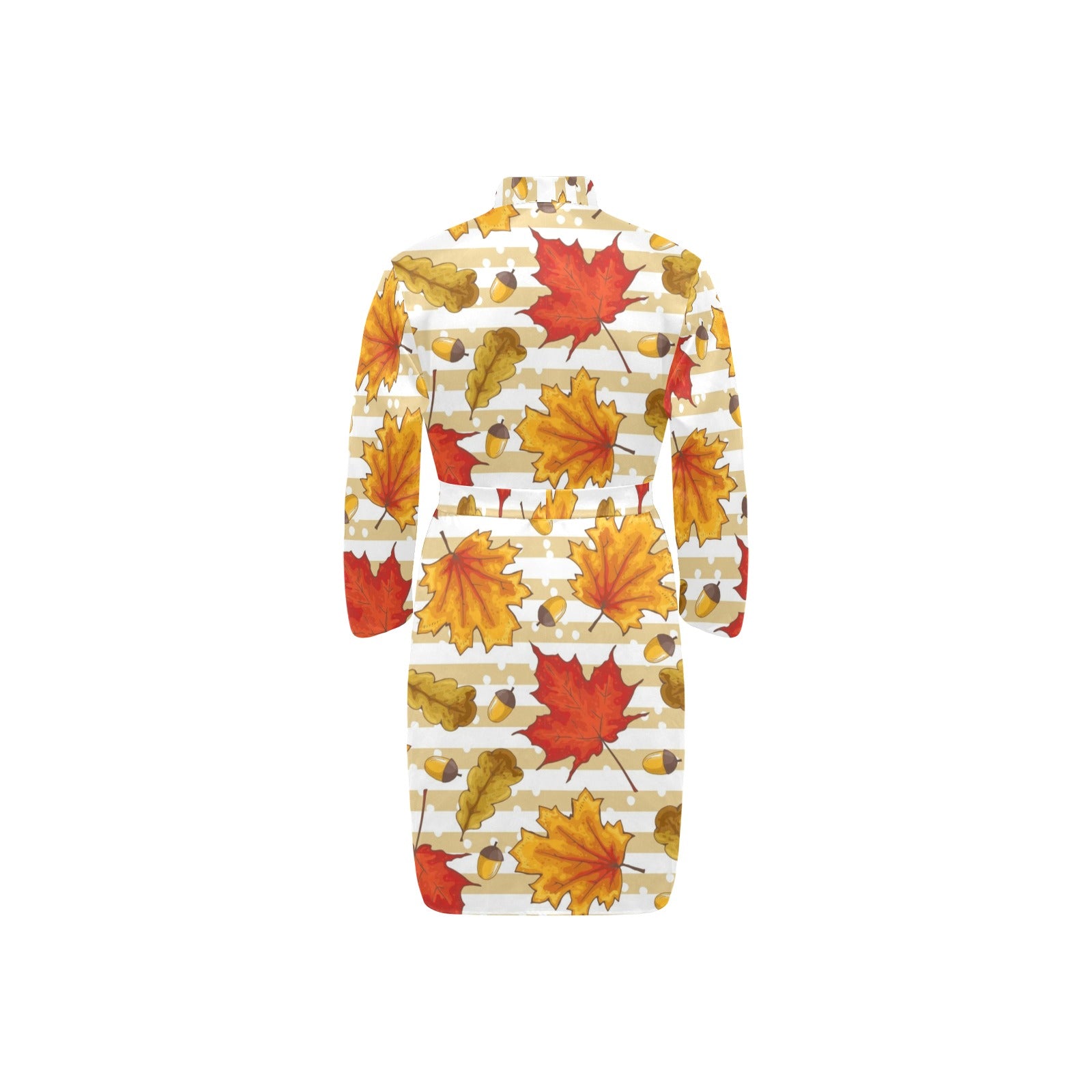 Maple leaf oak leaf acorns beige striped backgroun Men's Long Sleeve Belted Night Robe