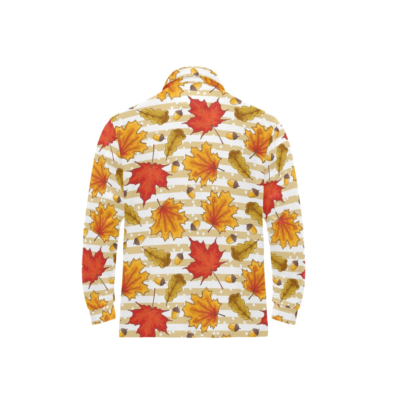 Maple leaf oak leaf acorns beige striped backgroun Men's Long Sleeve Polo Shirt